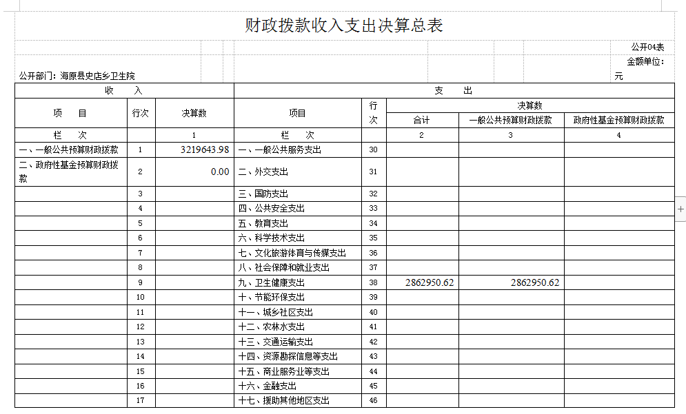 4、卫生健康支出(类)基层医疗卫生机构(款)其他基层医疗卫生机构支出(项)年初预算为0元,支出决算为50153.38元,超年初预算50153.38元。决算数大于预算数的主要原因是:乡镇卫生院没有分开做预算。