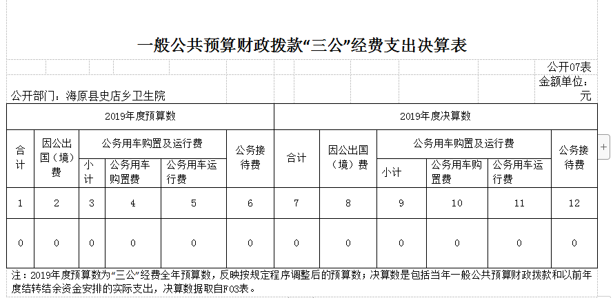 2.公务用车购置及运行维护费预算为元,支出决算为0元,完成预算的0%。其中:公务用车购置费支出为0元,公务用车运行维护费支出0元,主要用于0等。2019年度一般公共预算财政拨款开支的公务用车购置数0辆,公务用车保有量为0辆。