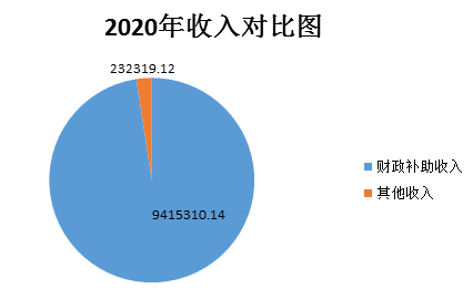 2020年度收入合计9647629.26元,其中:财政拨款收入9415310.14元,占97.59%;上级补助收入0元,占0%;事业收入0元,占0%;经营收入0元,占0%;附属单位上缴收入
