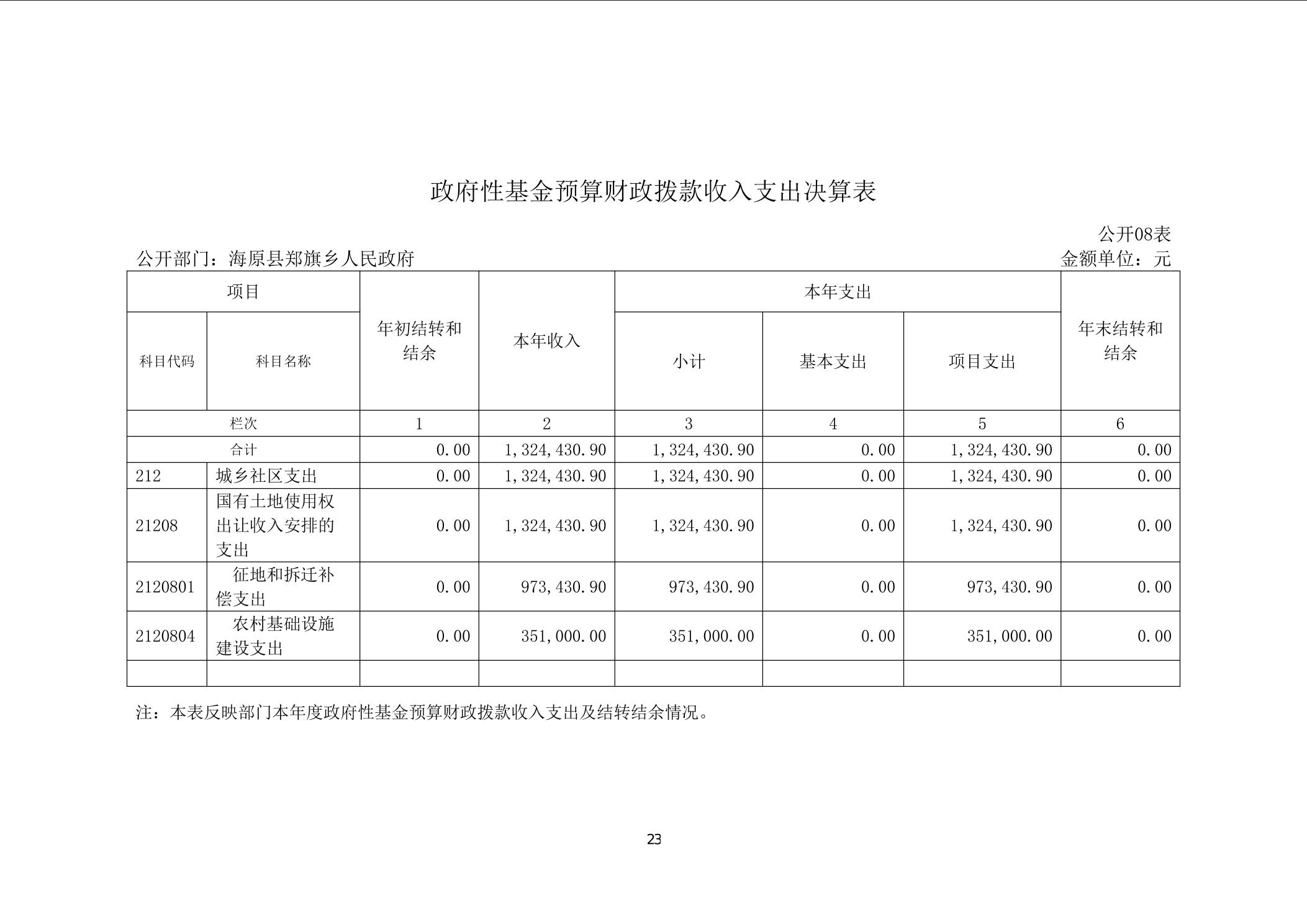 2022年度海原县郑旗乡人民政府部门决算
