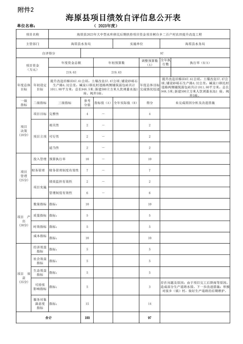 2023年海原县水务局项目支出绩效目标申报表(七) | |||||||||||