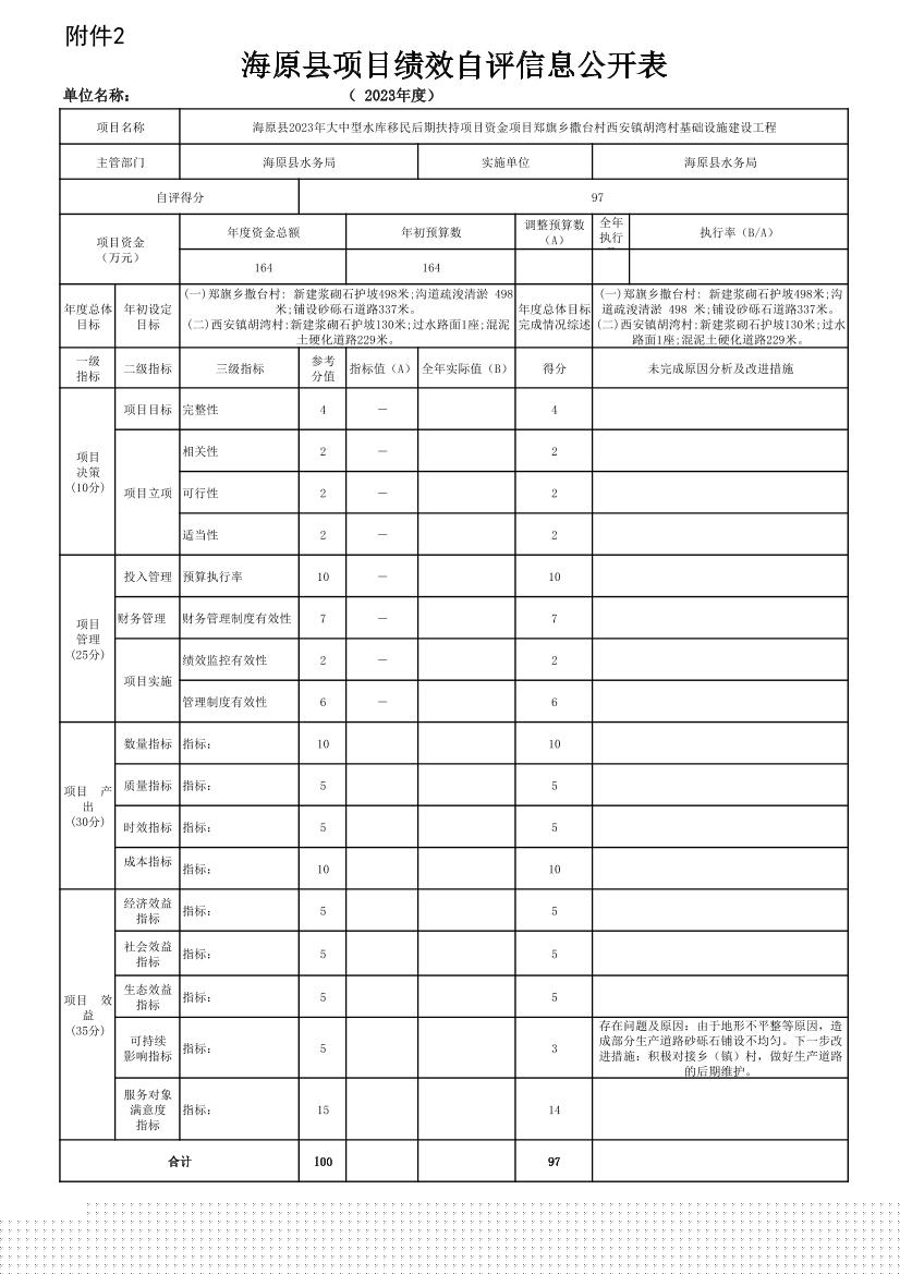 2023年海原县水务局项目支出绩效目标申报表(六) | |||||||||||