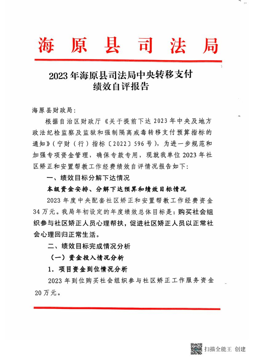 2.《2023年海原县司法局中央转移支付绩效自评报告--中央配套社区矫正和安置帮教工作经费项目资金》