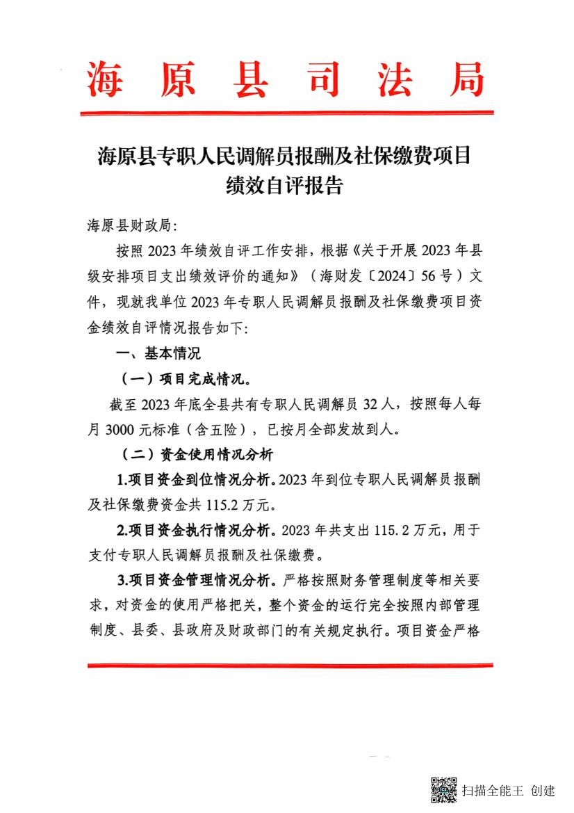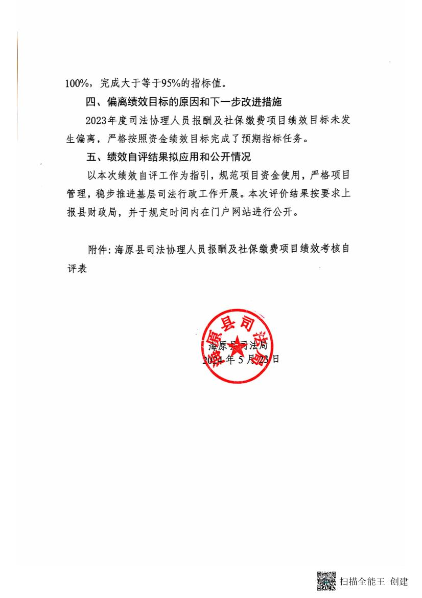 3.《海原县司法协理人员报酬及社保缴费项目绩效自评报告》
