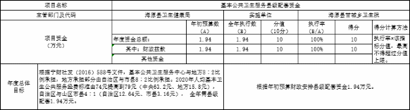 见附件(海原县甘城乡卫生院基本公共卫生服务县级配套资金绩效评价表)