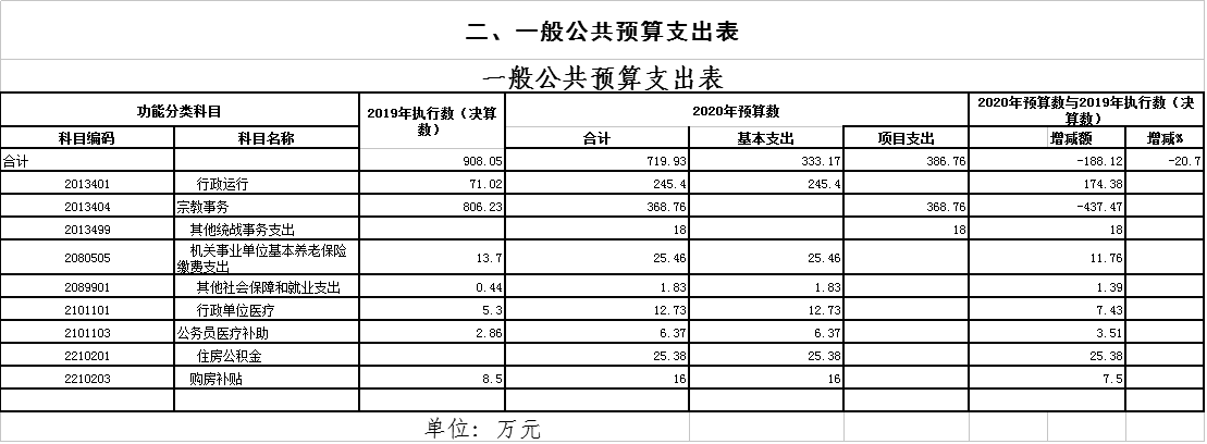 一、关于统战部2020年财政拨款收支预算情况的总体说明