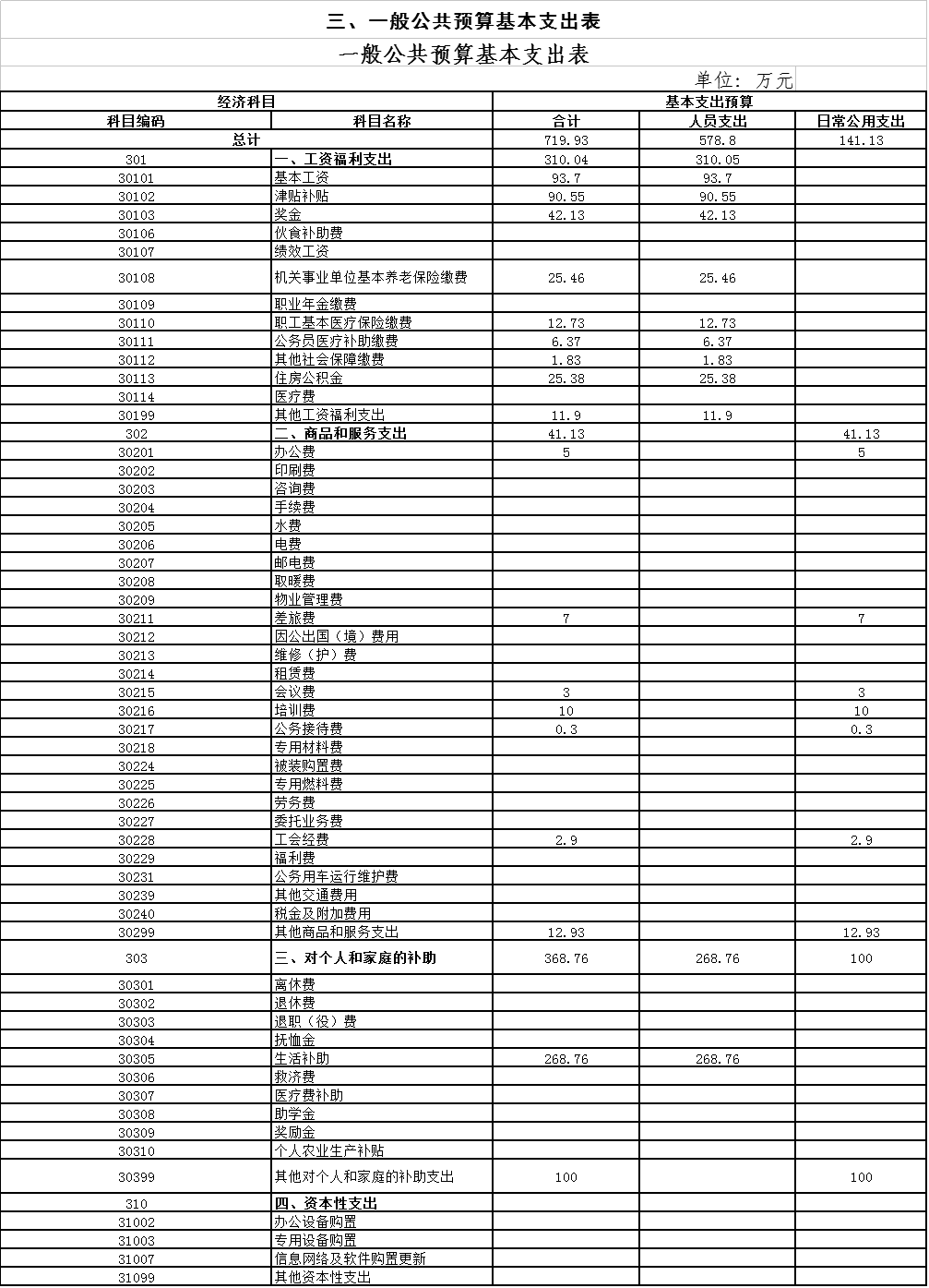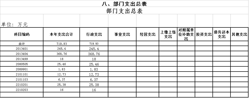 本年支出包括:行政支出 719.93万元,占100%;事业支出0万元,占0 %;