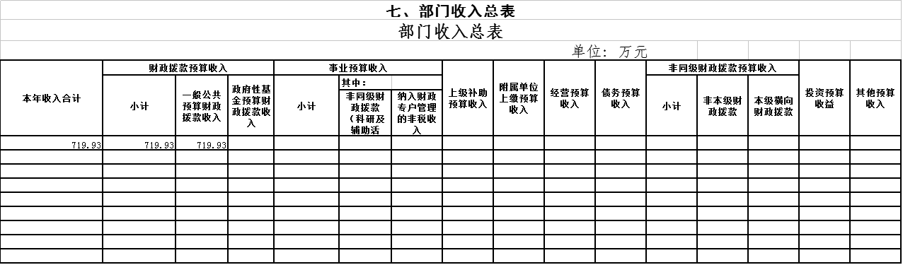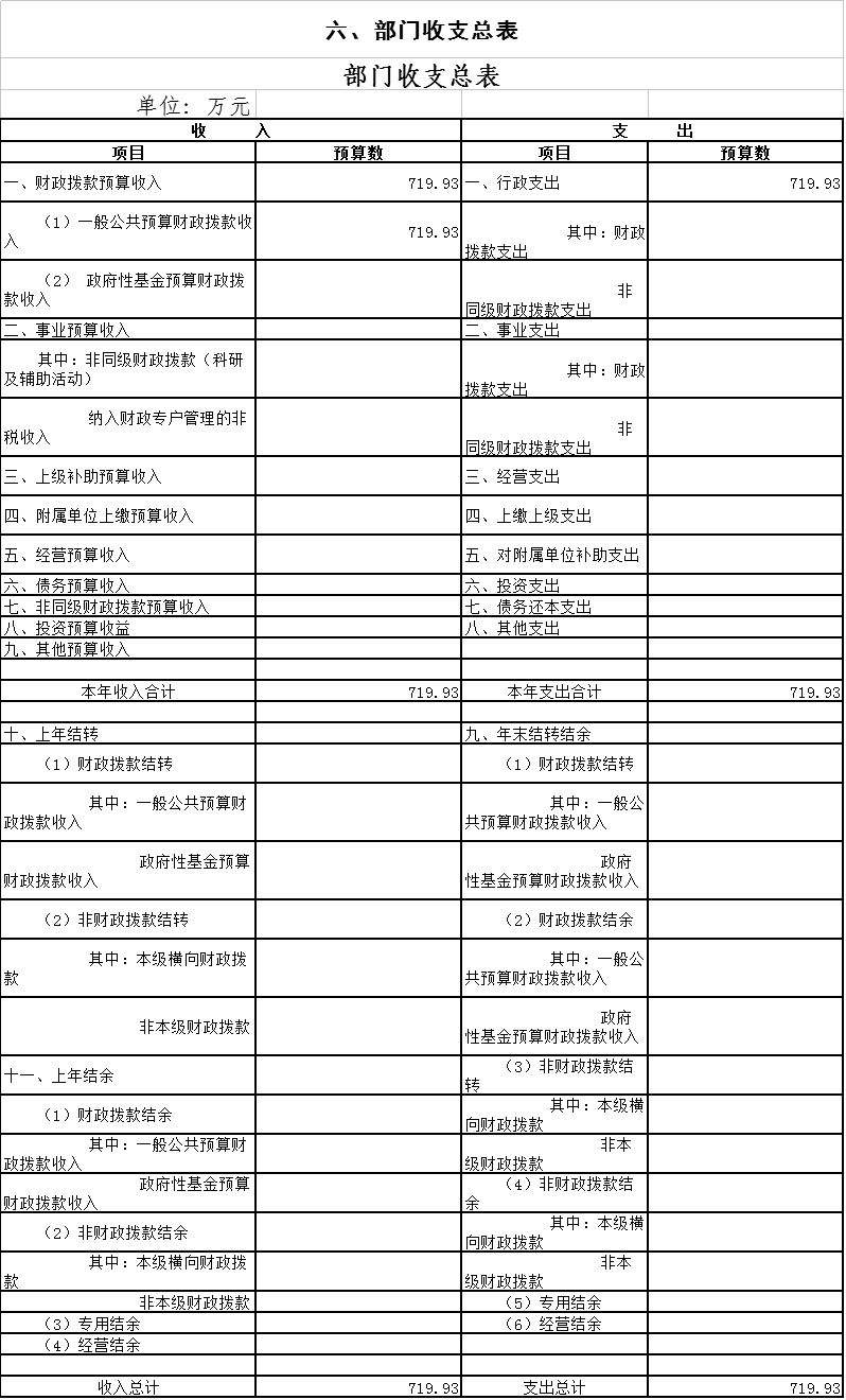 本年收入包括:财政拨款预算收入719.93万元,占 100%;
