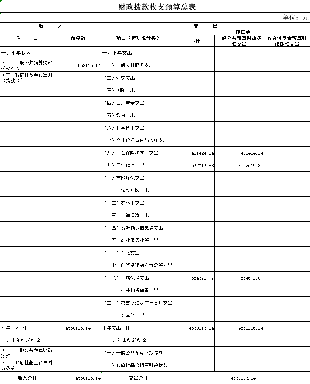 一、财政拨款收支总表