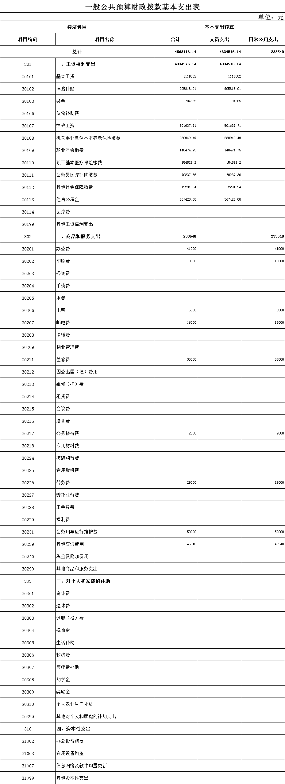 三、一般公共预算基本支出表