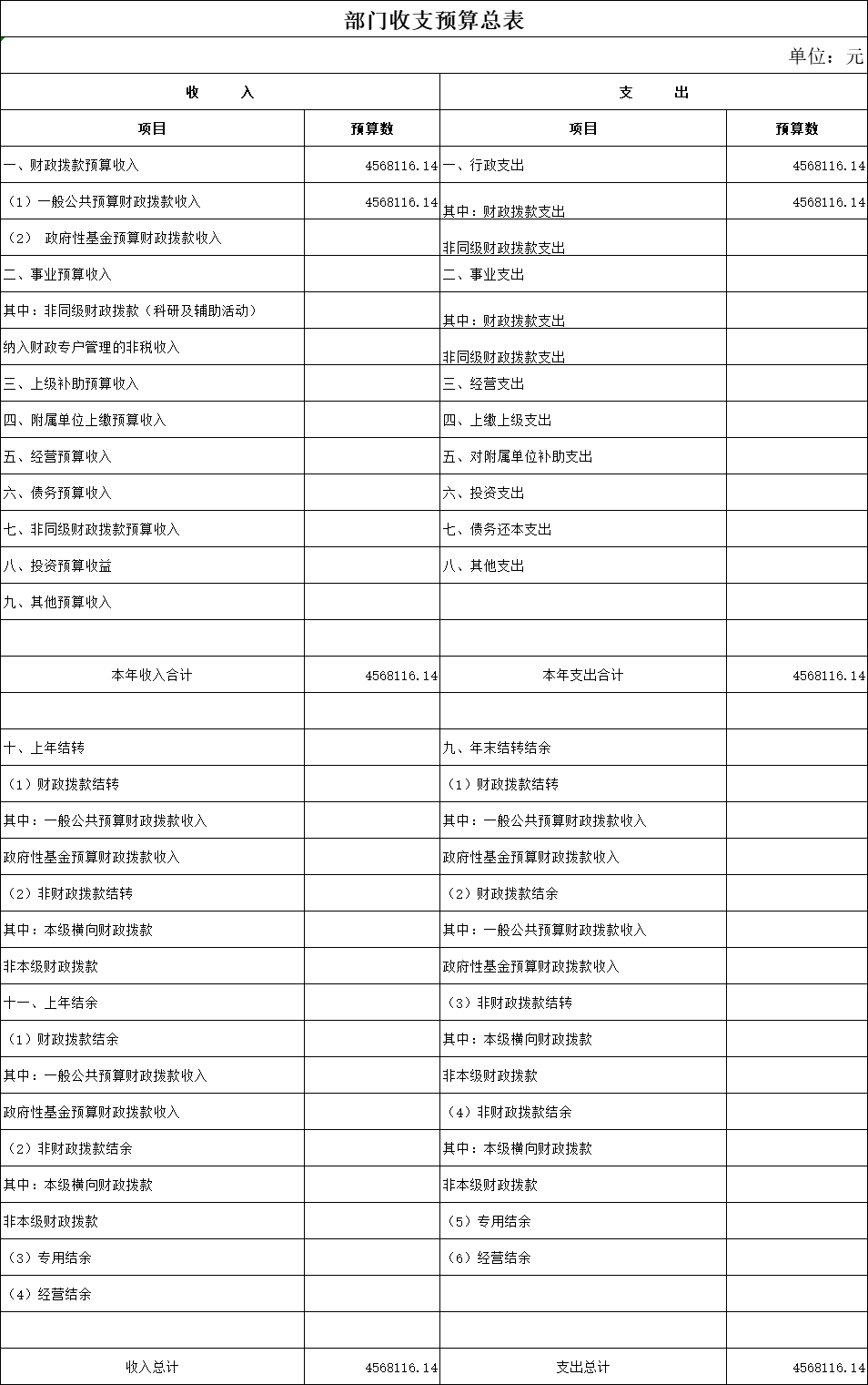 六、部门收支总表