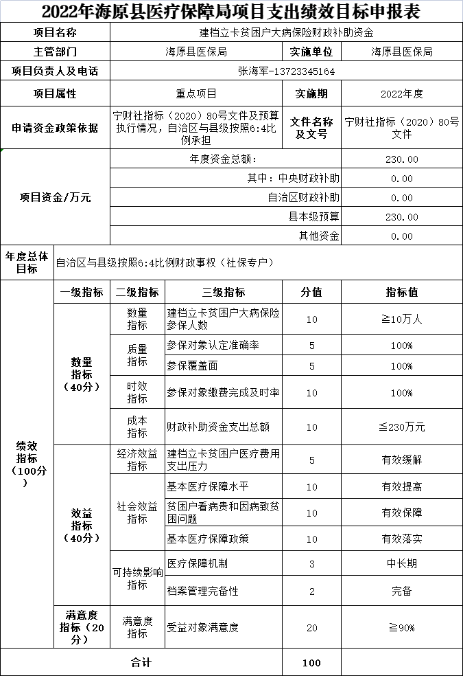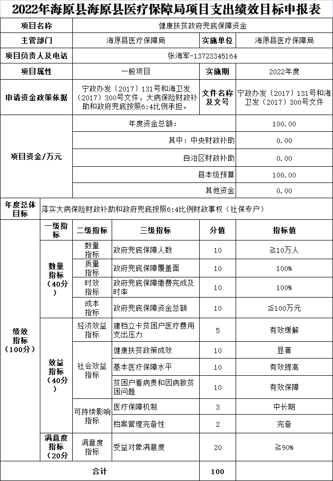 海原县医疗保障局2022年部门预算——预算表