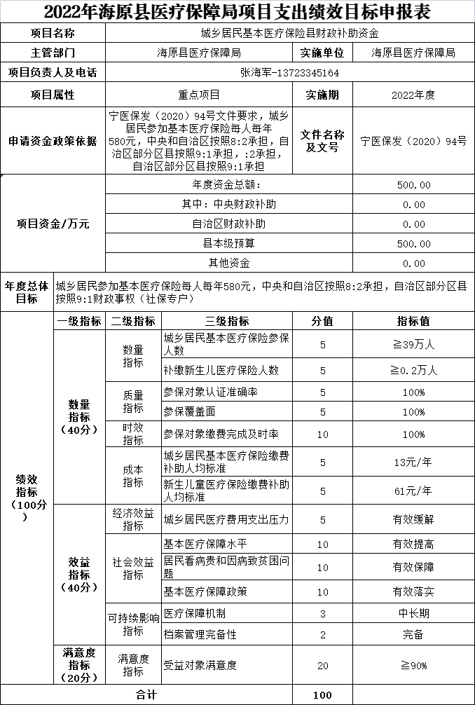 海原县医疗保障局2022年部门预算