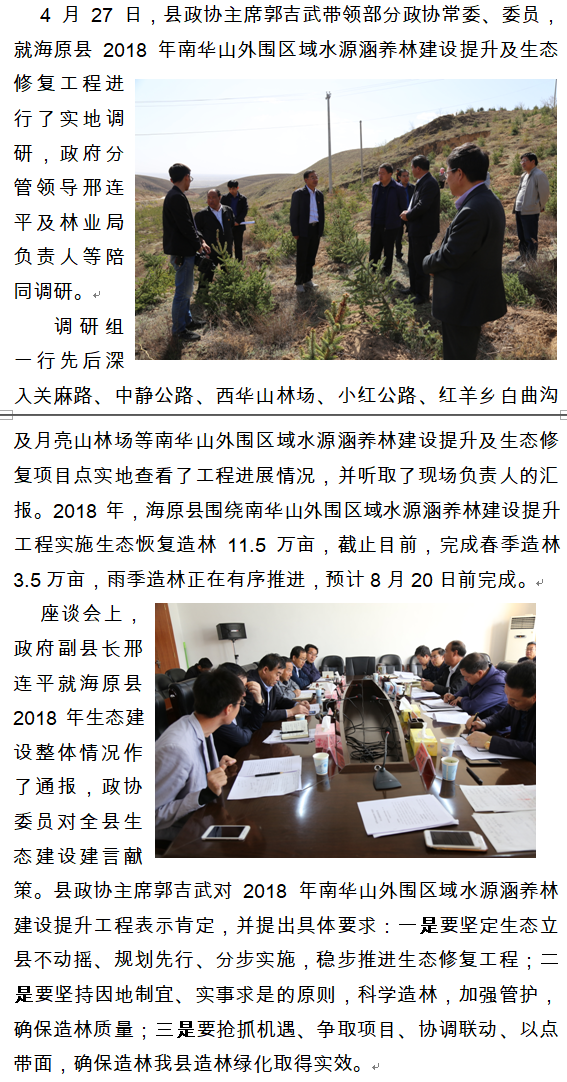 县政协调研南华山外围区域水源涵养林建设提升及生态修复工程