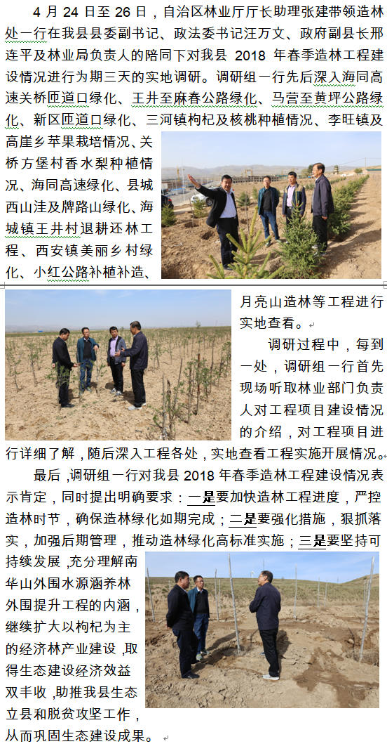 自治区林业厅调研组一行调研我县2018年春季造林工程建设情况