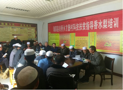 本次培训是宁夏科技厅驻方堡村扶贫工作队2018年围绕脱贫攻坚核心,实施“两个带头人”工程、开展“扶智、扶志”工作的重要举措。44名技术骨干将在一年的定向培训中系统掌握香水梨科学种植管理技术,依托科学技术发展产业,成为脱贫致富带头人,同时为各自然村树立技术榜样,带动全村群众爱科学、学技术,为方堡村成为海原县的香水梨产业示范基地、在2018年脱贫销号提供强劲的动力。(供稿:关桥乡方堡村驻村工作队)