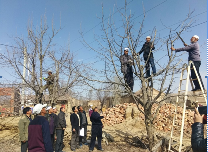 本次培训是方堡村科技培训从“大水漫灌”式培训向“精准滴灌”式培训转变的一次尝试。全村44名热爱香水梨产业、以香水梨种植为主要收入手段、渴望掌握技术的建档立卡贫困户成为了技术骨干。在4天的培训中,参训群众结合驻村工作队编撰的香水梨技术教材,对修剪、施肥、病虫害防治、花果管理等技术进行了系统的理论学习,同时每位学员都在果园中通过手把手的教学,亲自进行香水梨果树整形修剪的实践,熟悉掌握了香水梨树树形培育、整形修剪的基本原则和方法。