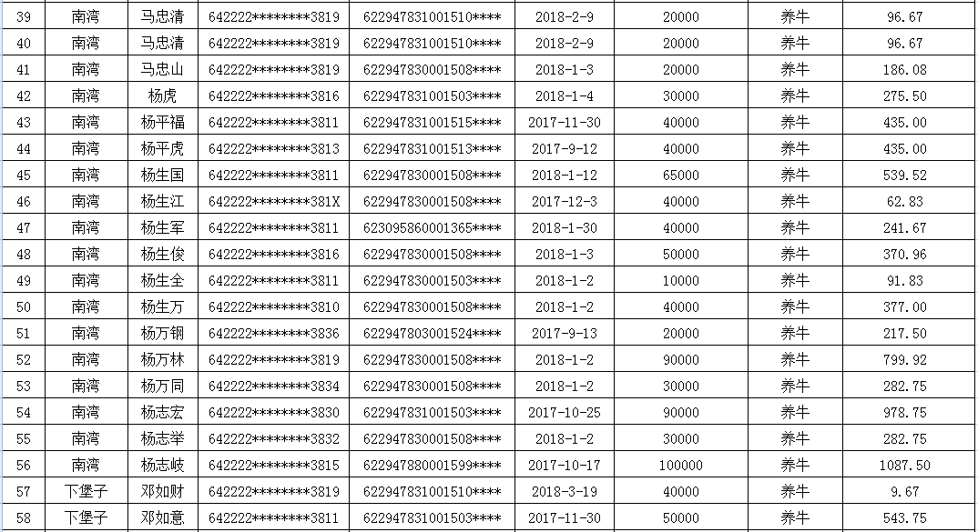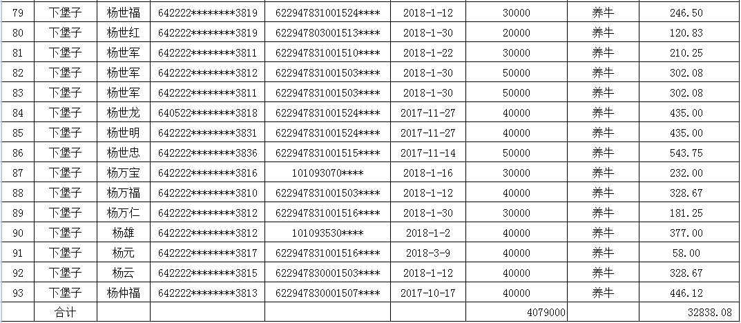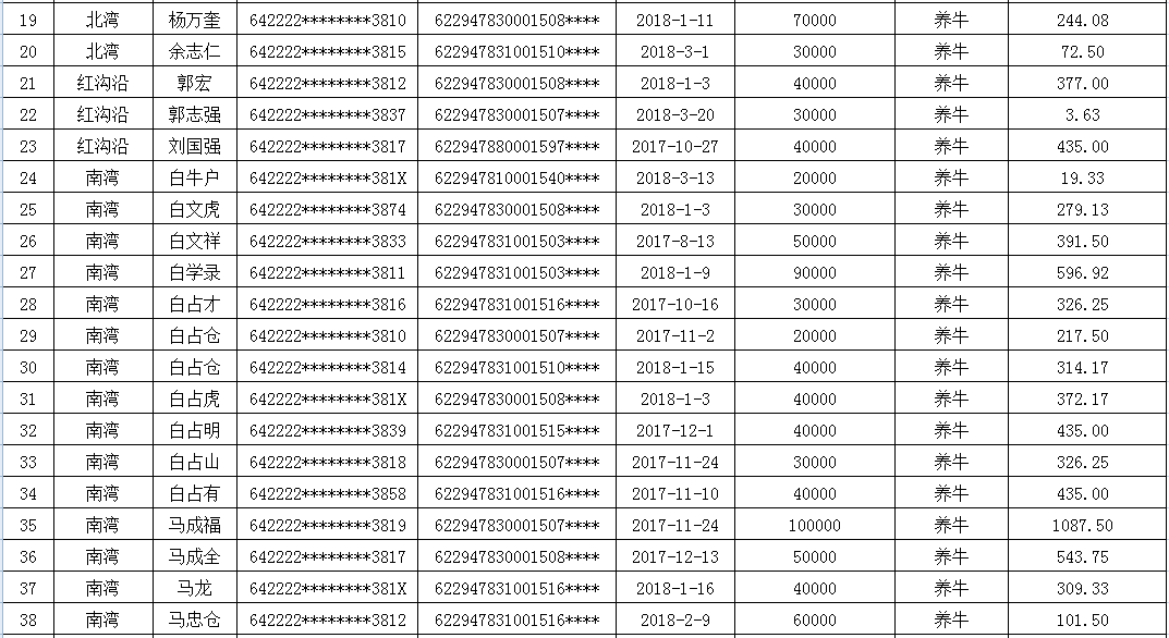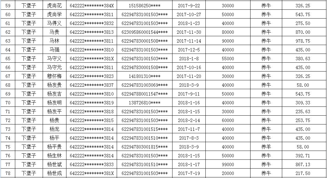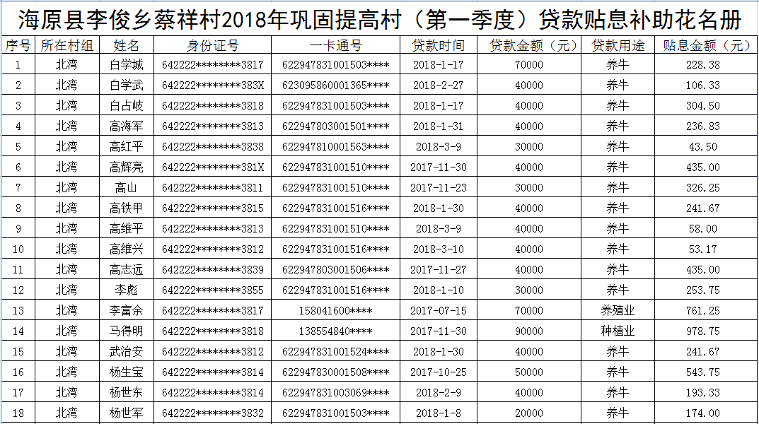 海原县李俊乡蔡祥村2018年巩固提高村(第一季度)贷款贴息补助花名册