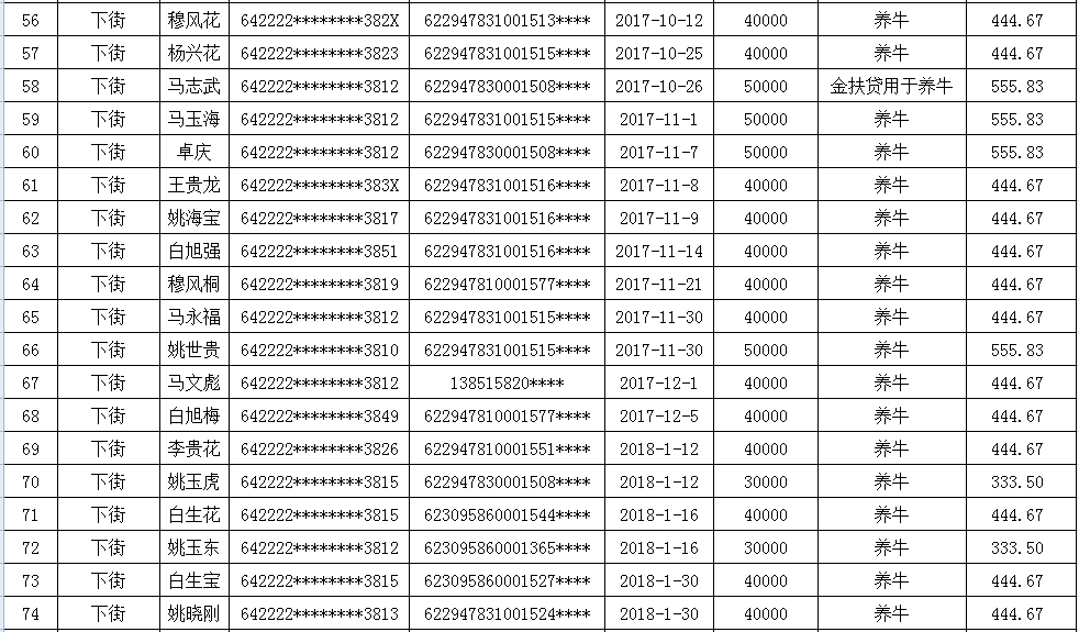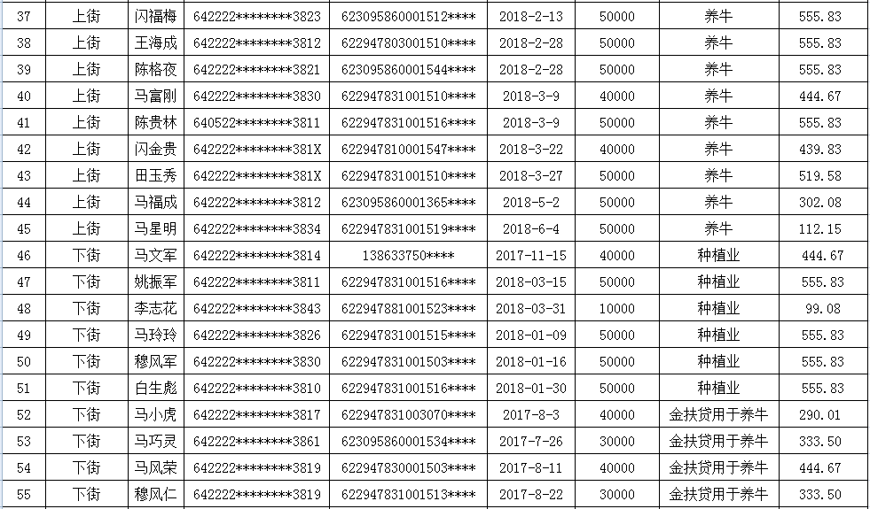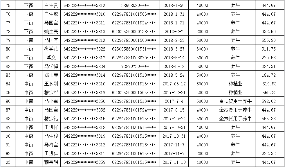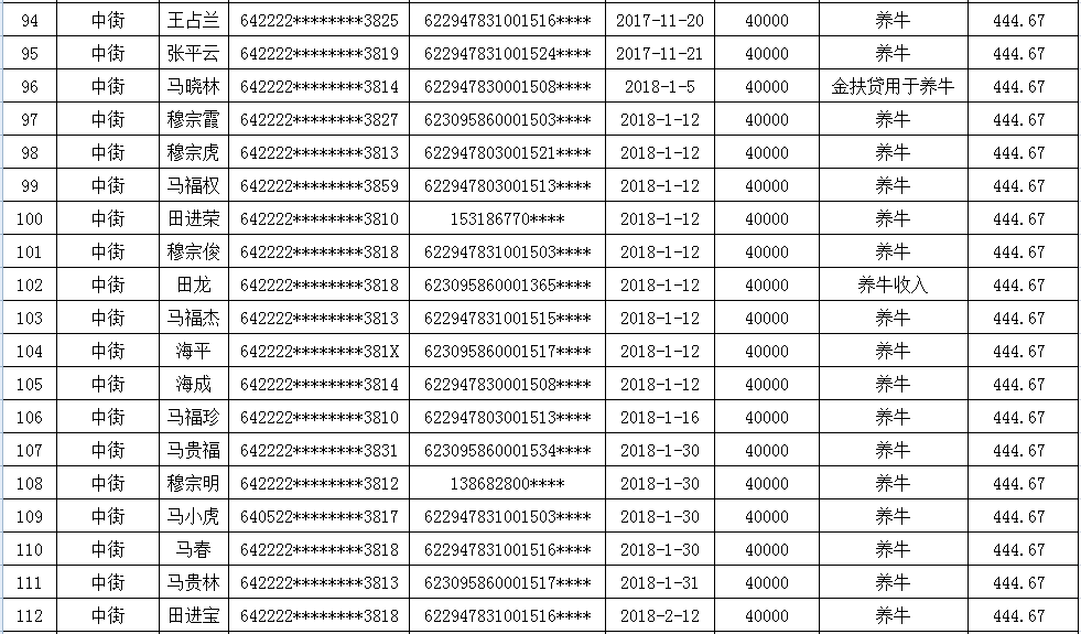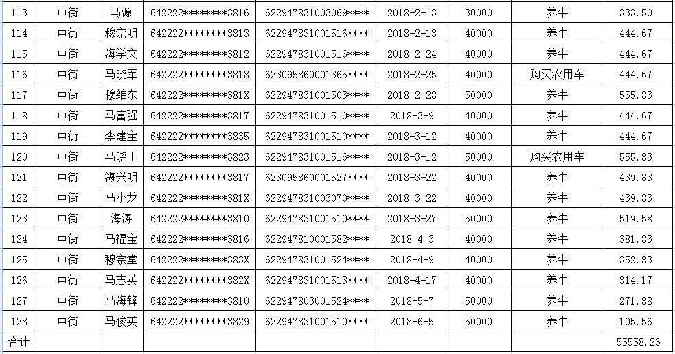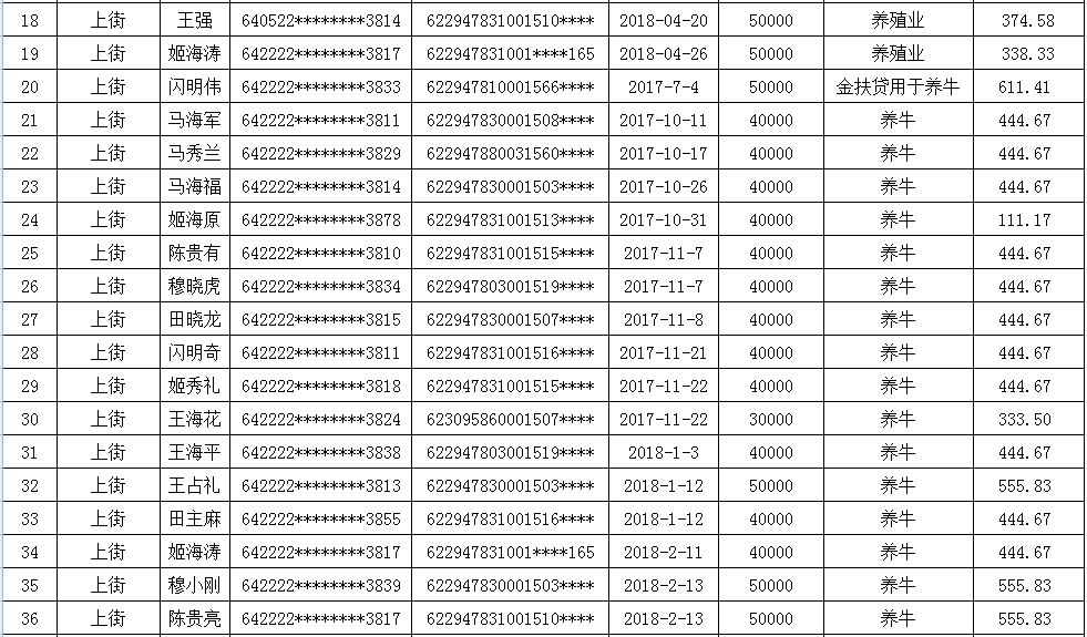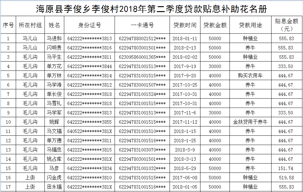 海原县李俊乡李俊村2018年第二季度贷款贴息补助花名册