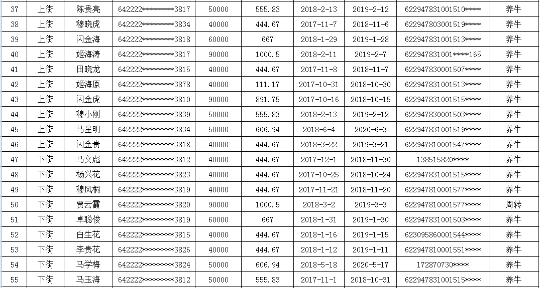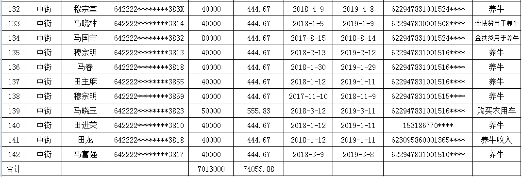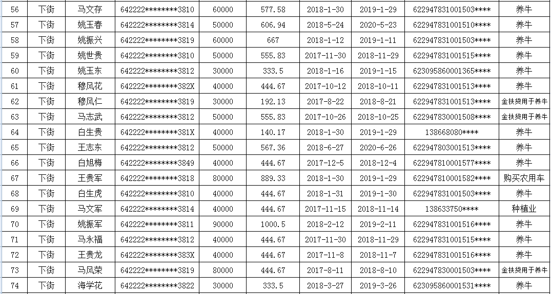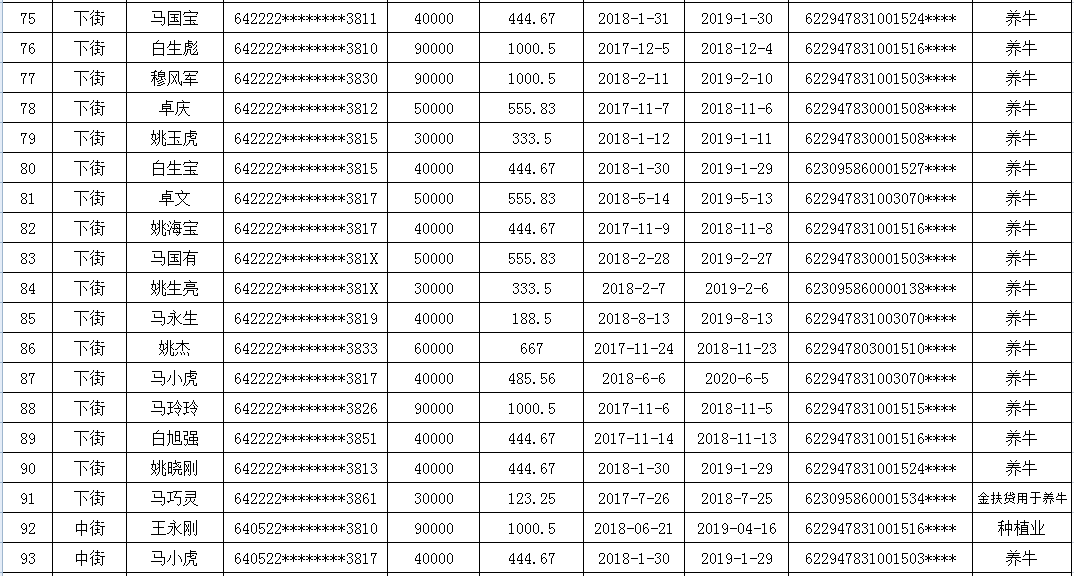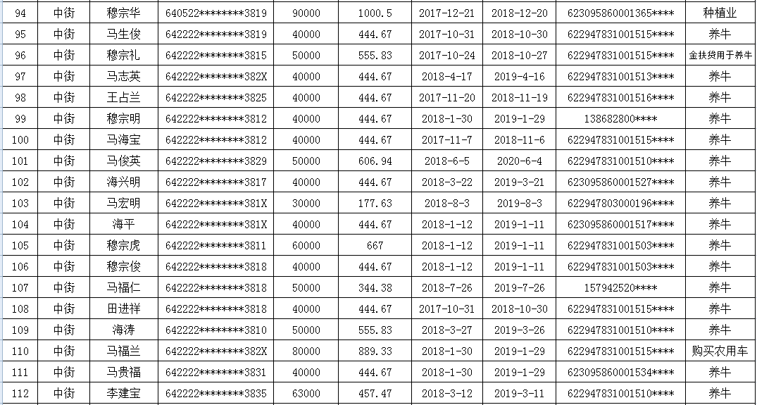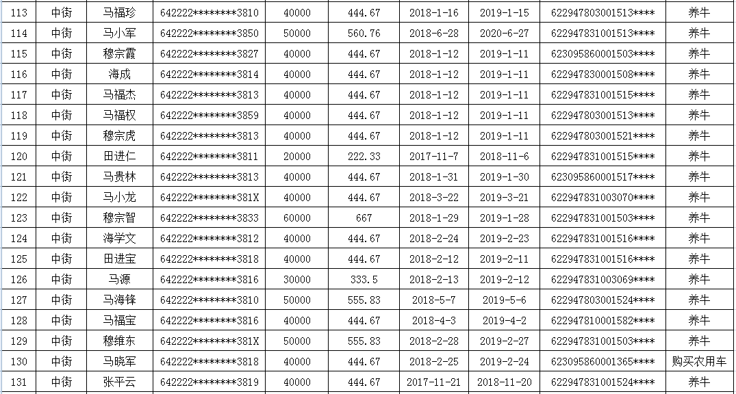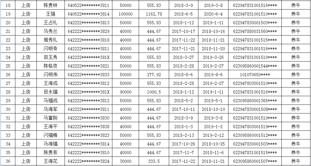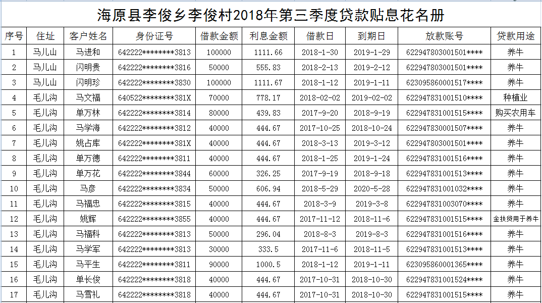 海原县李俊乡李俊村2018年第三季度贷款贴息花名册