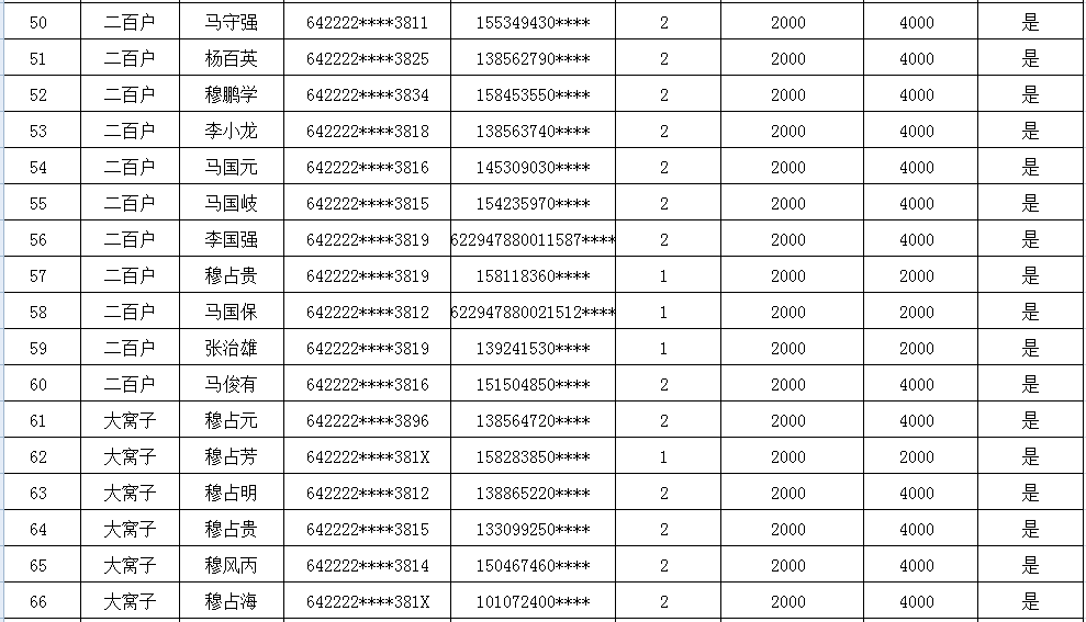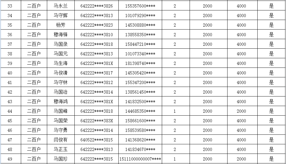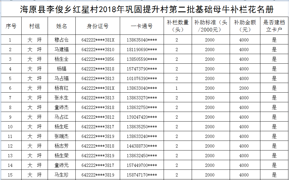 海原县李俊乡红星村2018年巩固提升村第二批基础母牛补栏花名册