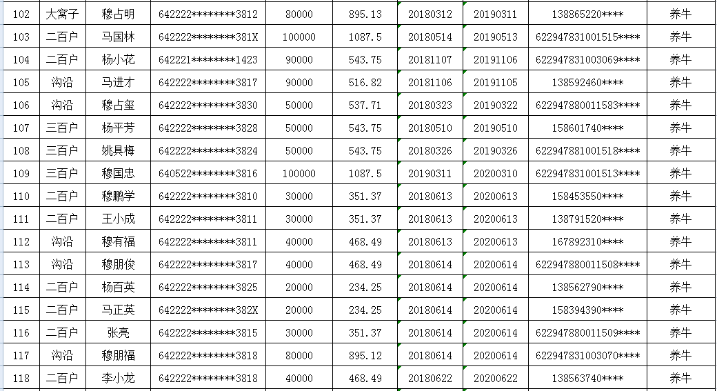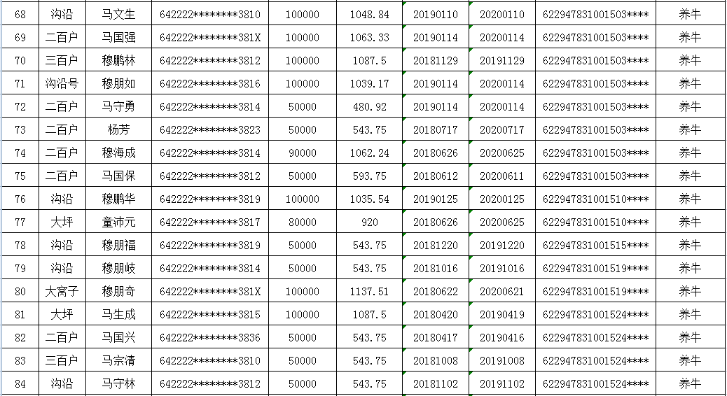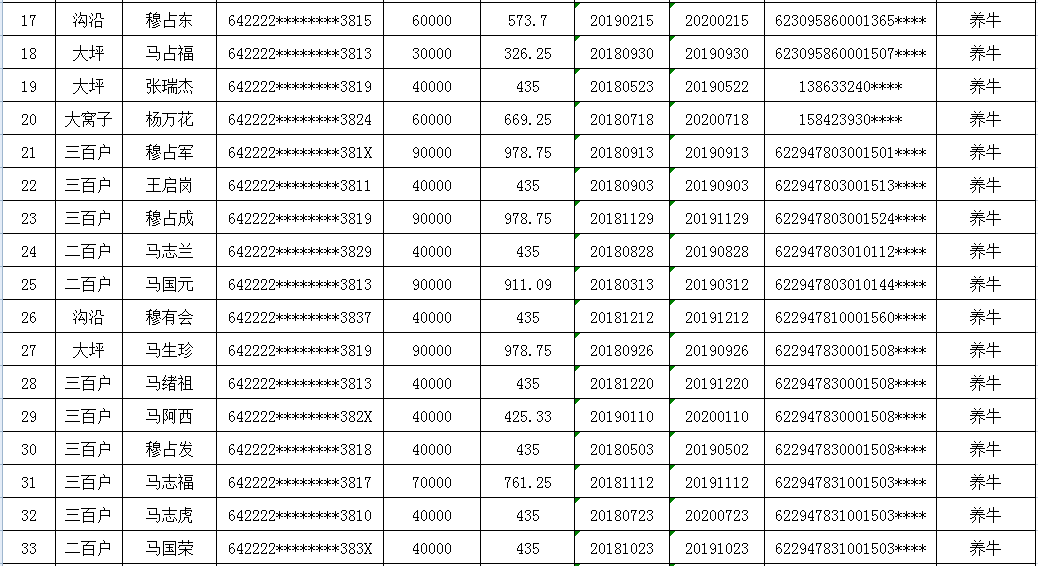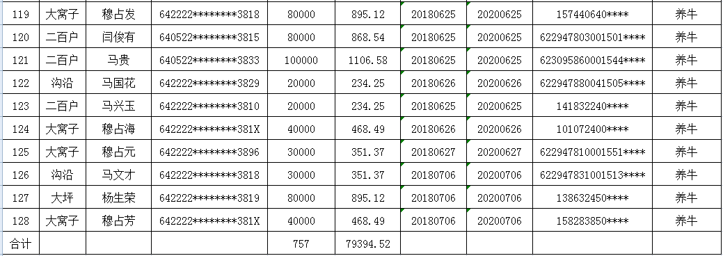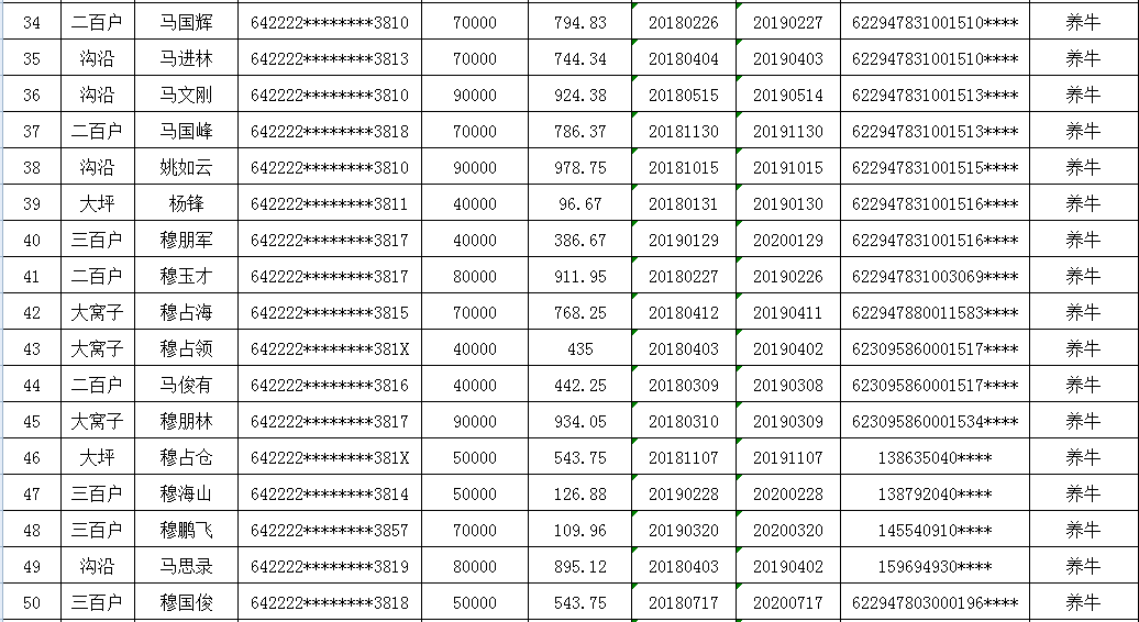 海原县李俊乡红星村2019年贷款贴息第一季度补助花名册