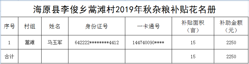 海原县李俊乡蒿滩村2019年秋杂粮补贴花名册
