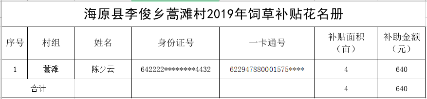 海原县李俊乡蒿滩村2019年饲草补贴花名册