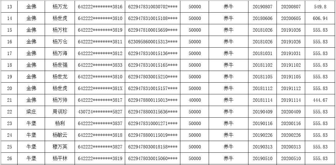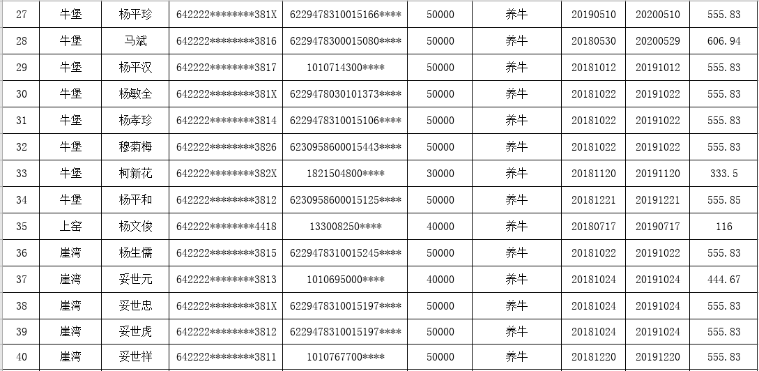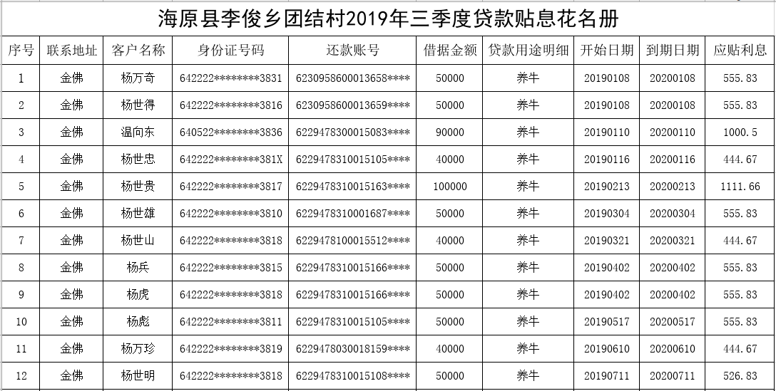 海原县李俊乡团结村2019年三季度贷款贴息花名册