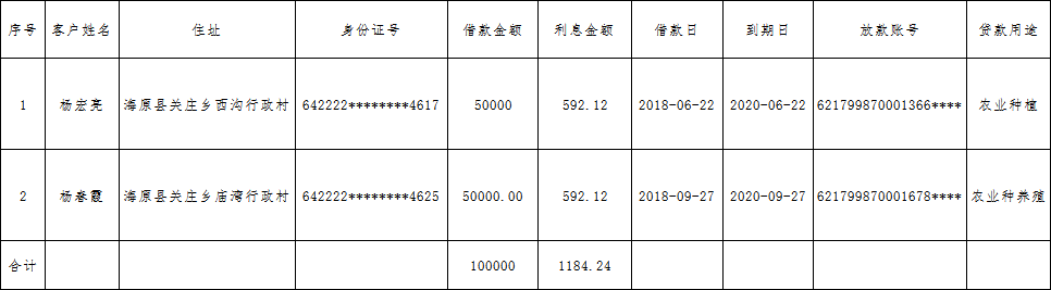海原县关庄乡邮储银行海原县支行扶贫小额贷款贴息明细(2020年一季度)
