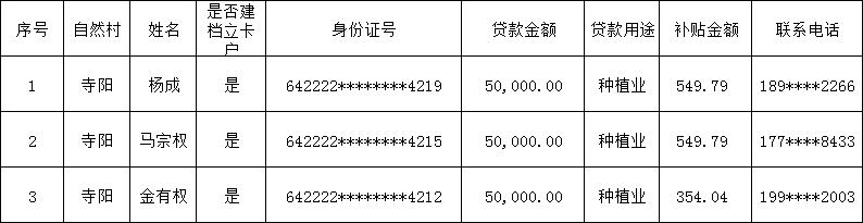 海原县九彩乡马湾村2020年1季度农行贷款贴息花名册
