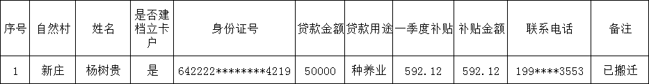 海原县九彩乡新庄村2020年1季度邮政贷款贴息补贴花名册