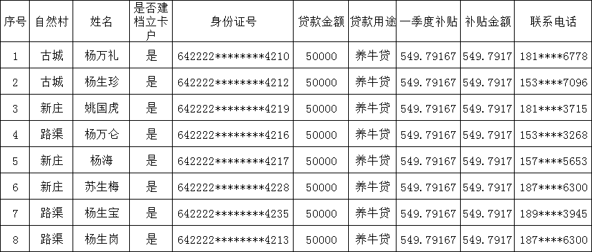 海原县九彩乡新庄村2020年1季度宁夏银行贷款贴息花名册
