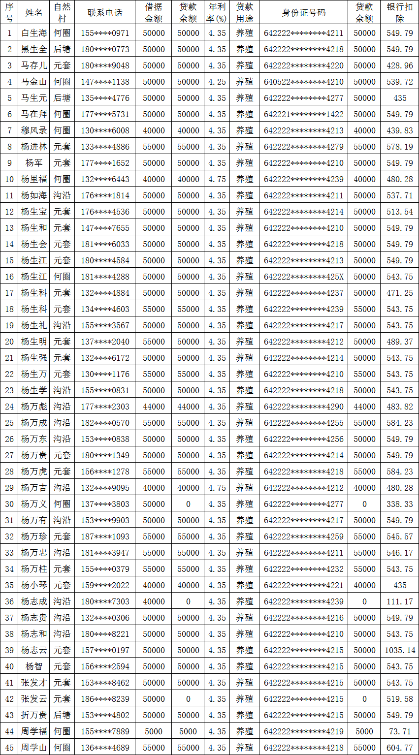海原县九彩乡元套村2020年1季度信用社贷款贴息补贴花名册
