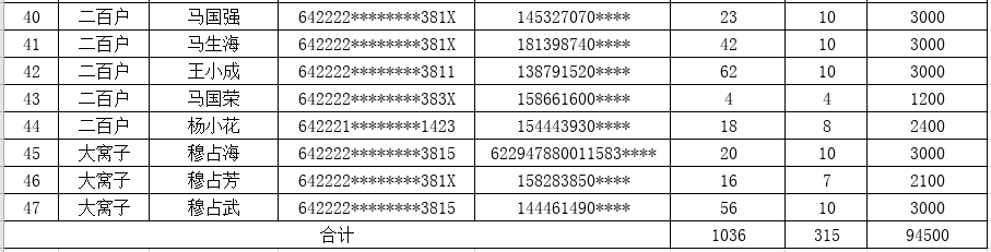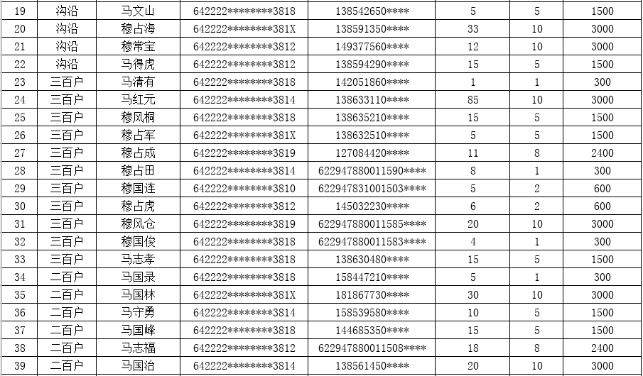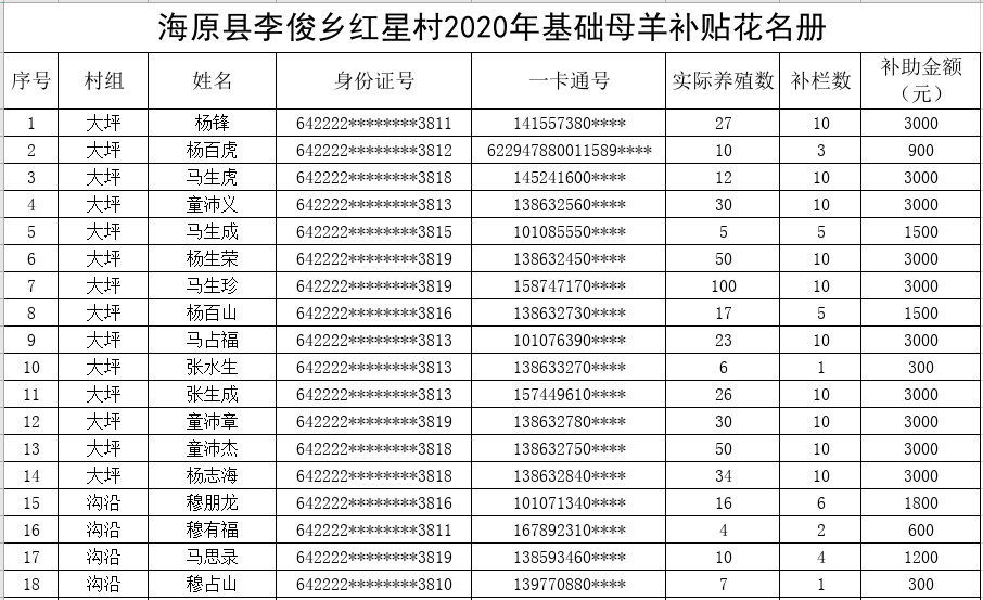 海原县李俊乡红星村2020年基础母羊补贴花名册