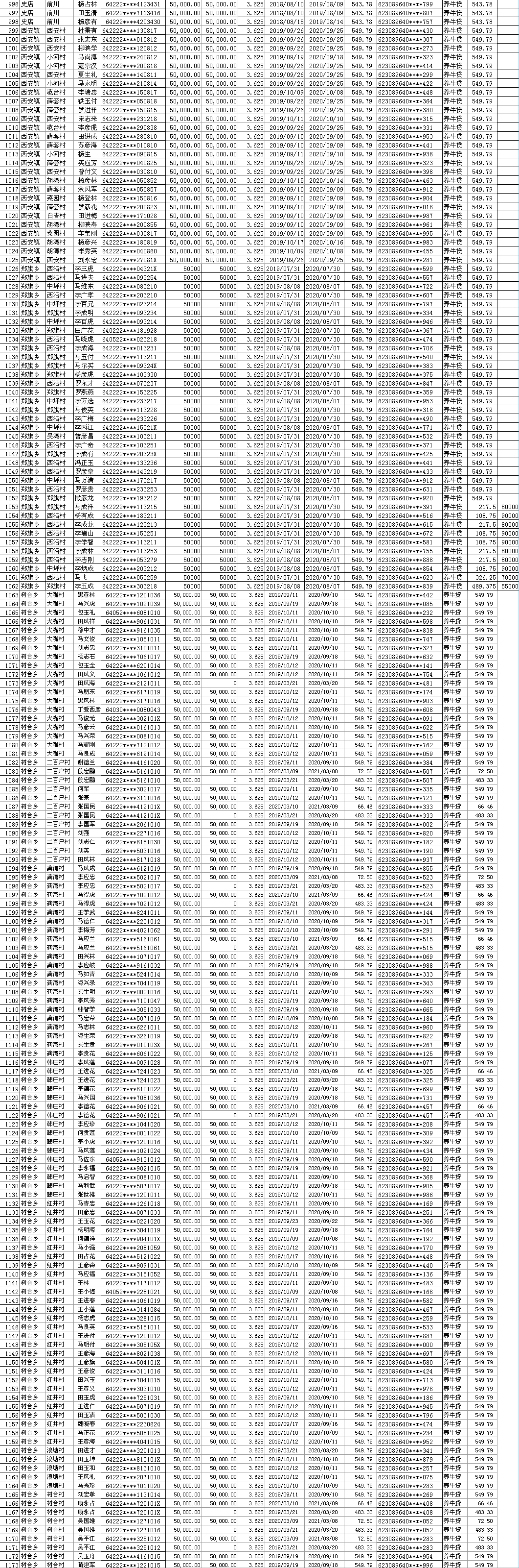2020年海原县第一季度特色养牛贷贴息公示花名册