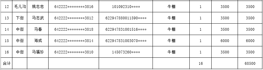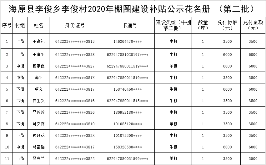 海原县李俊乡李俊村2020年棚圈建设补贴公示花名册 (第二批)