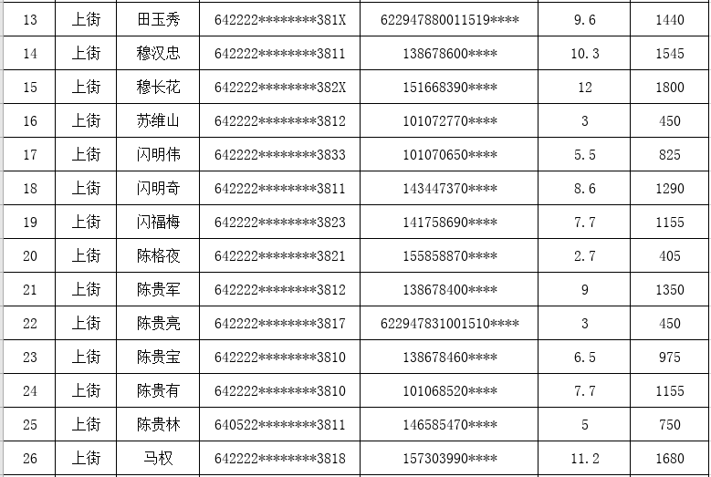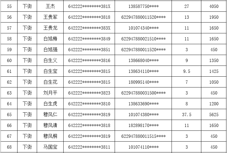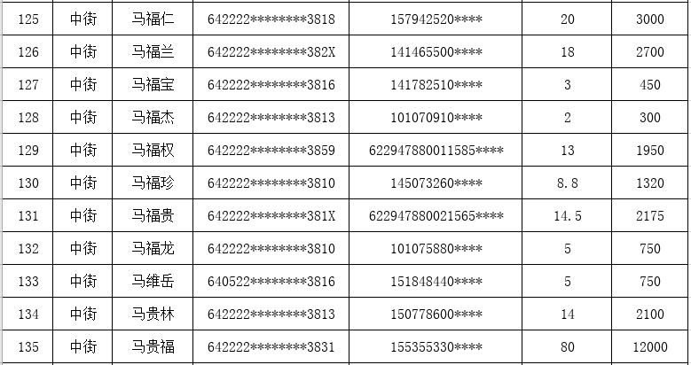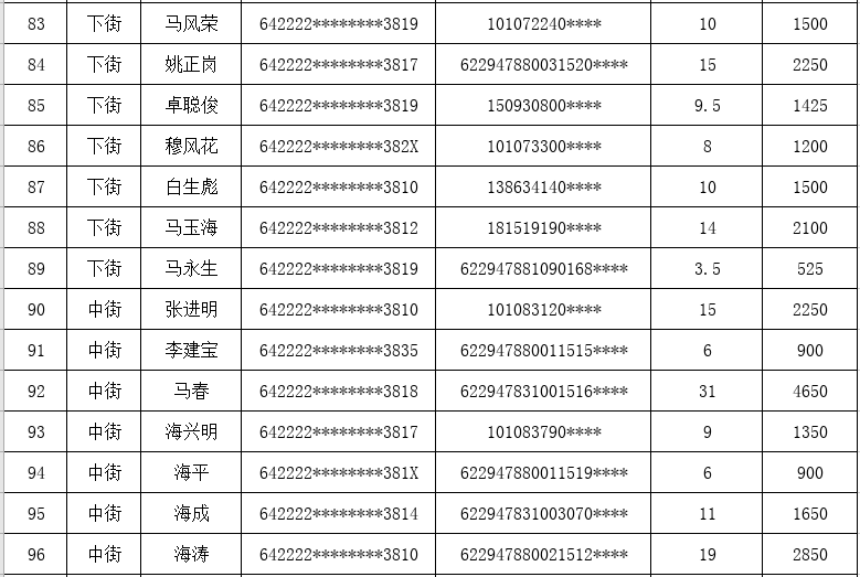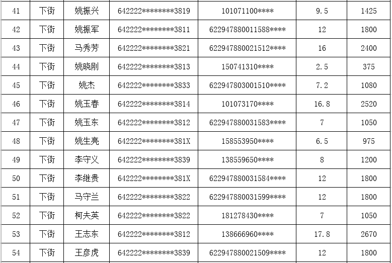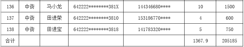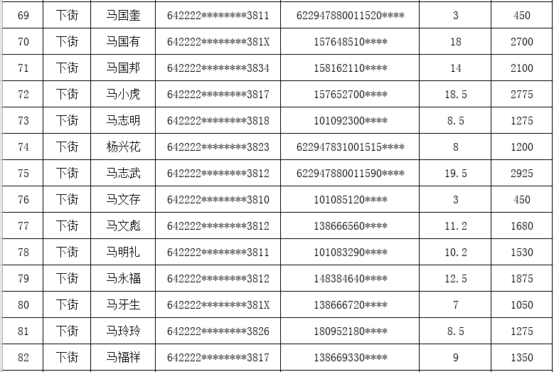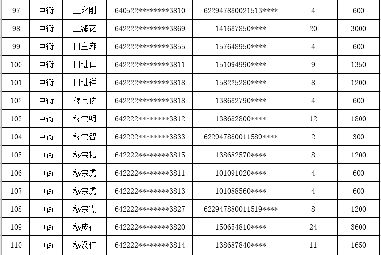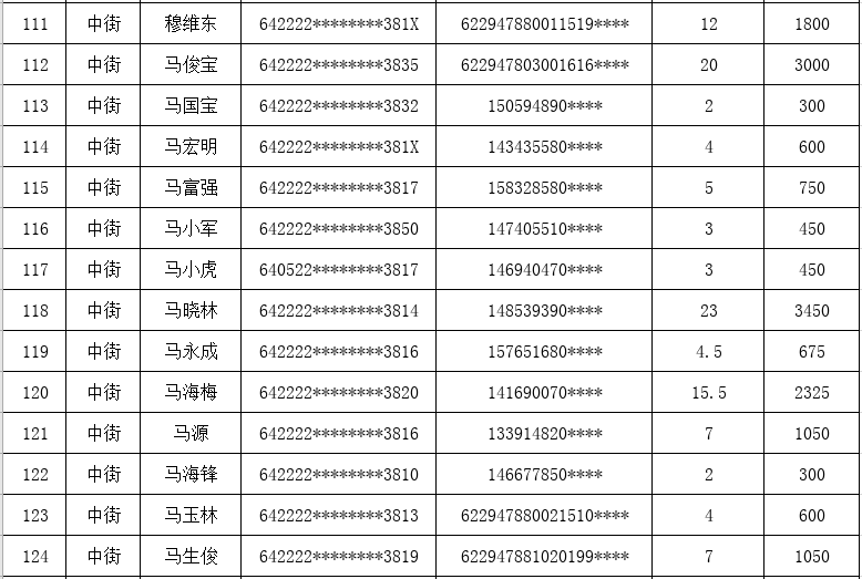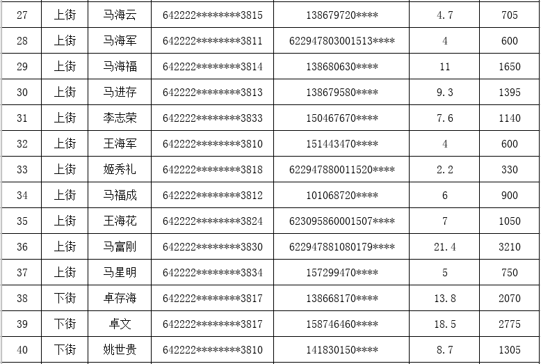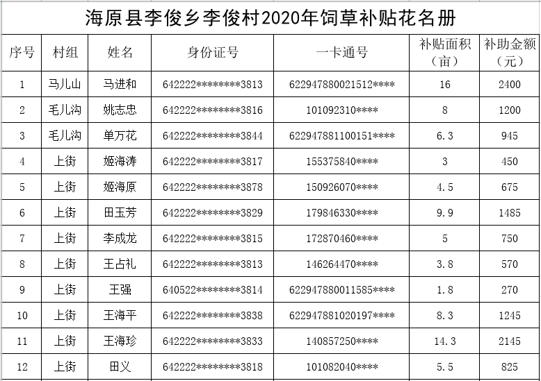 海原县李俊乡李俊村2020年饲草补贴花名册