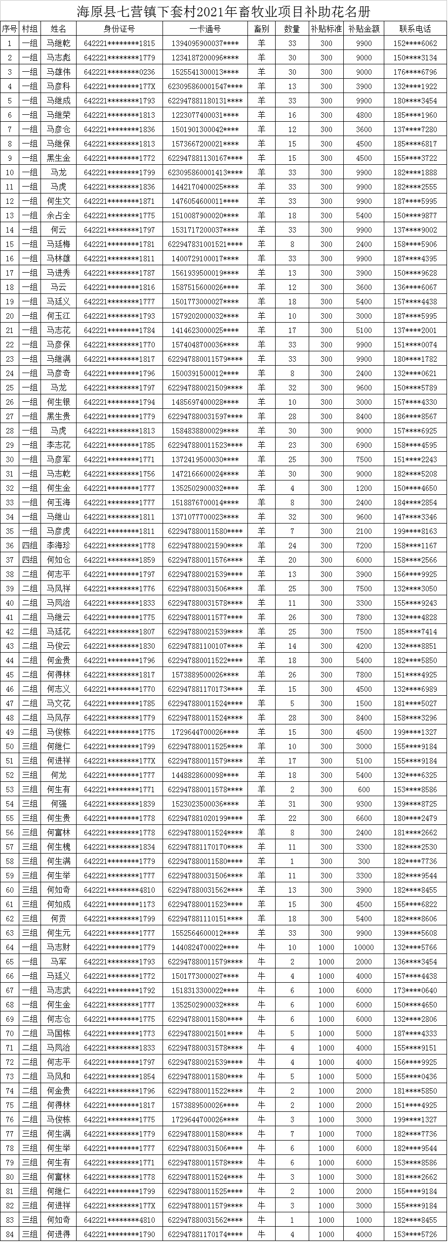 海原县七营镇下套村2021年畜牧业项目补助花名册