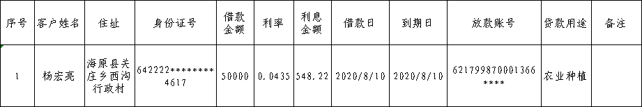 海原县关庄乡邮储银行2021年第2季度脱贫人口小额贷款贴息人员花名册