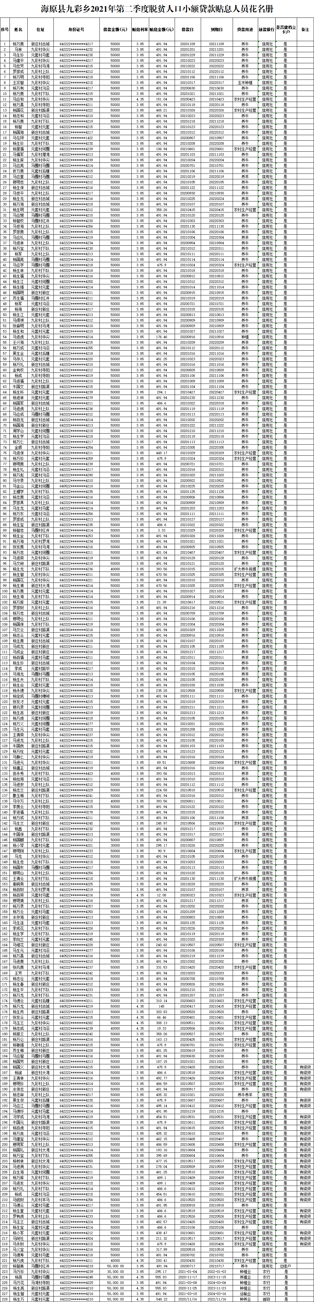 海原县九彩乡2021年第二季度脱贫人口小额贷款贴息人员花名册