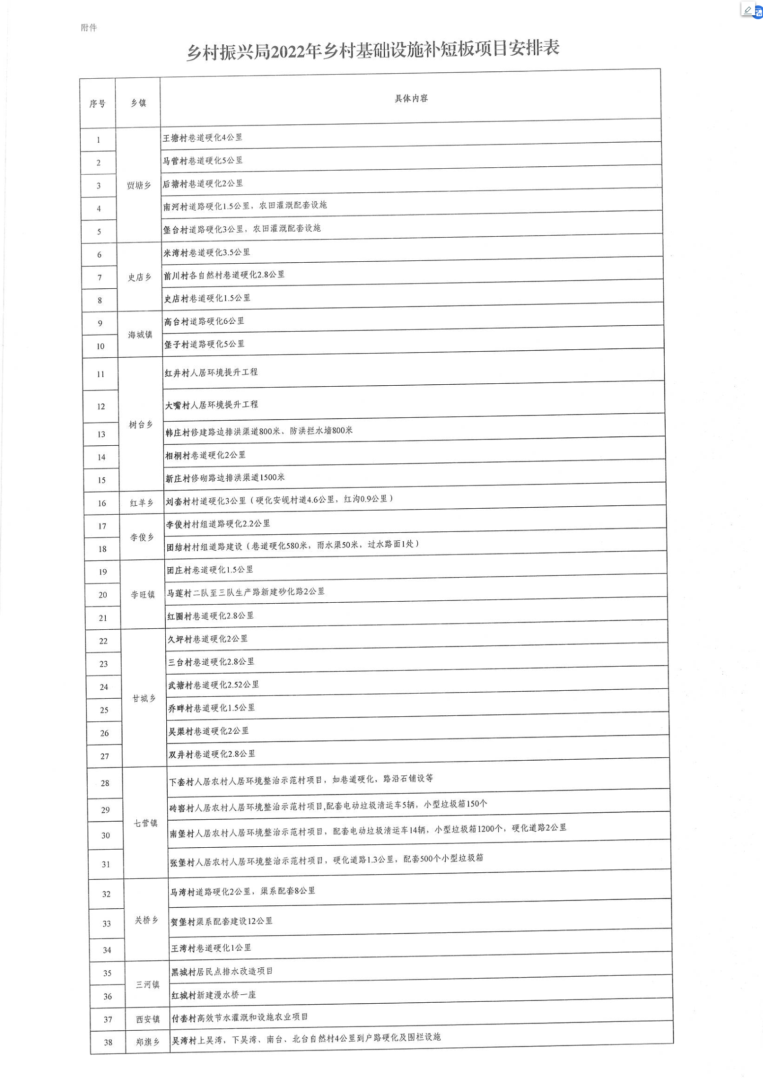 乡村振兴局2022年乡村基础设施补短板项目工作方案