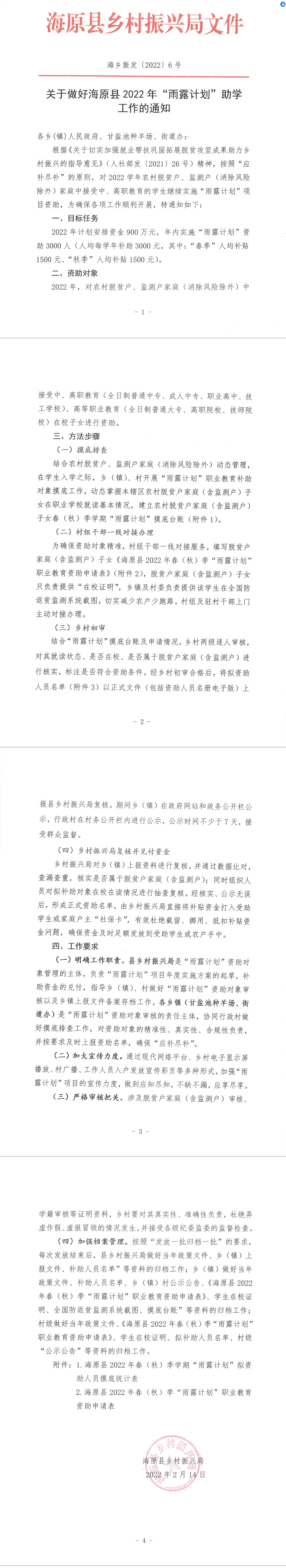 关于做好海原县2022年“雨露计划“助学工作的通知