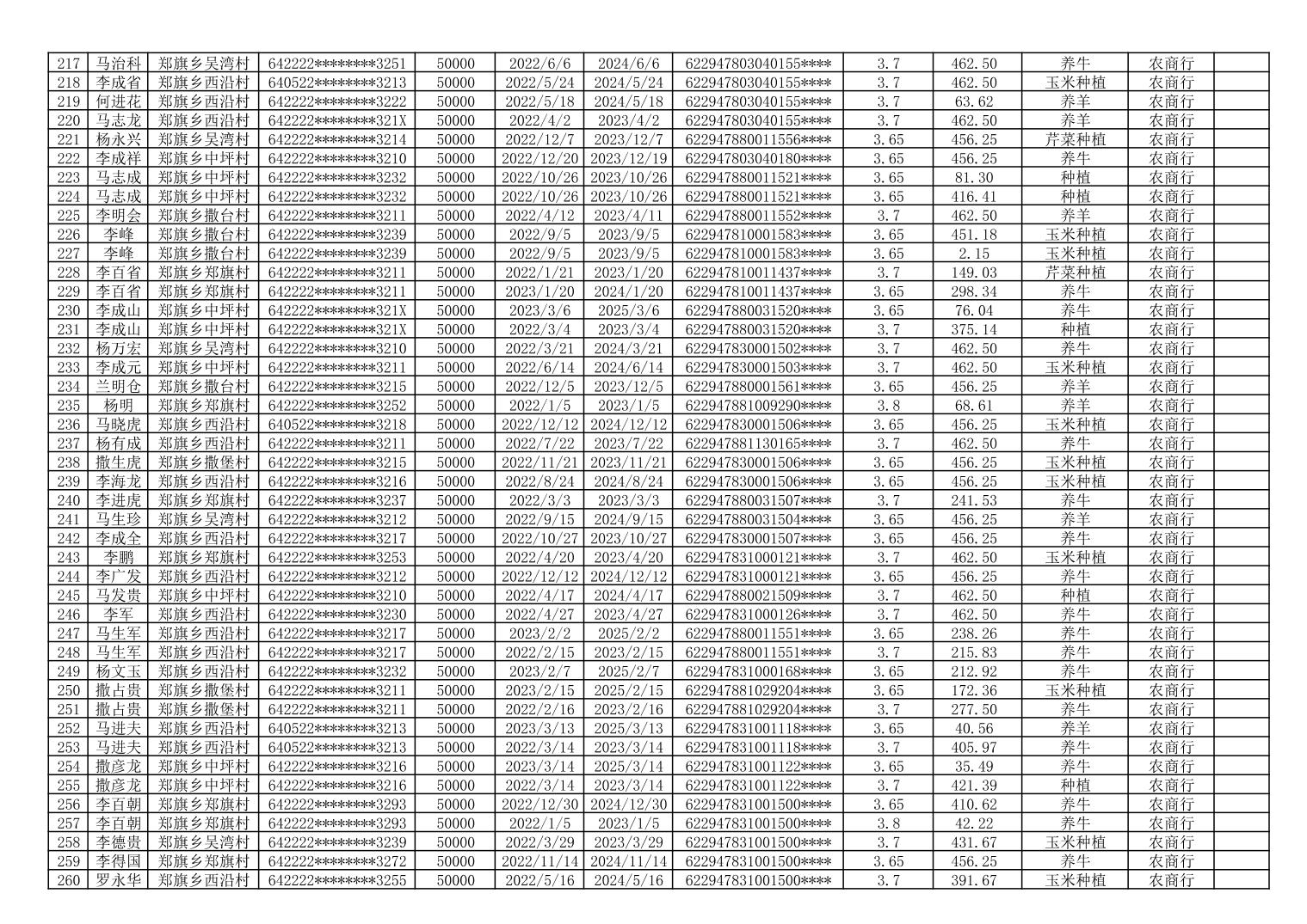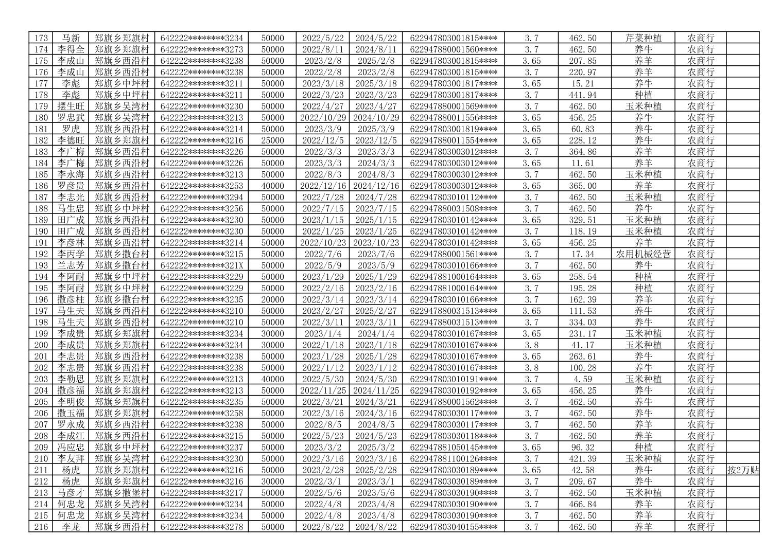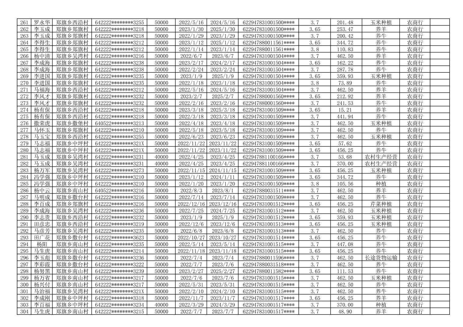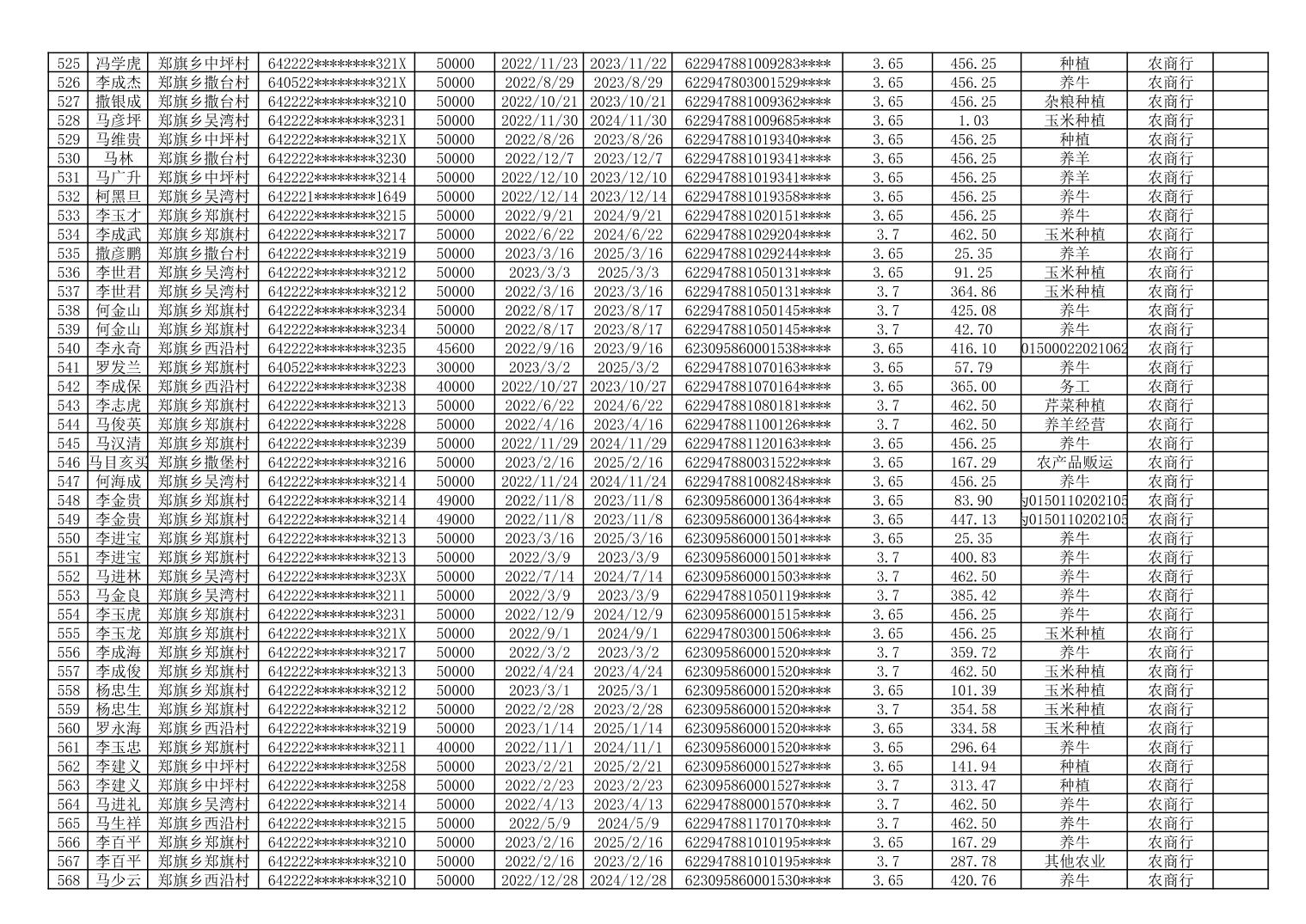 海原县郑旗乡2023年第一季度脱贫人口小额贷款贴息人员花名册