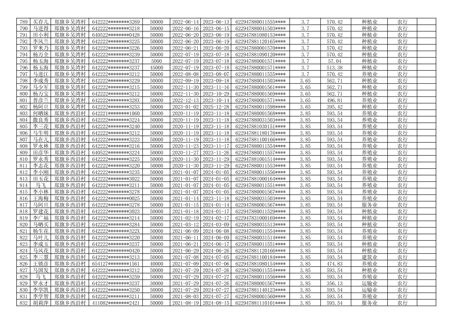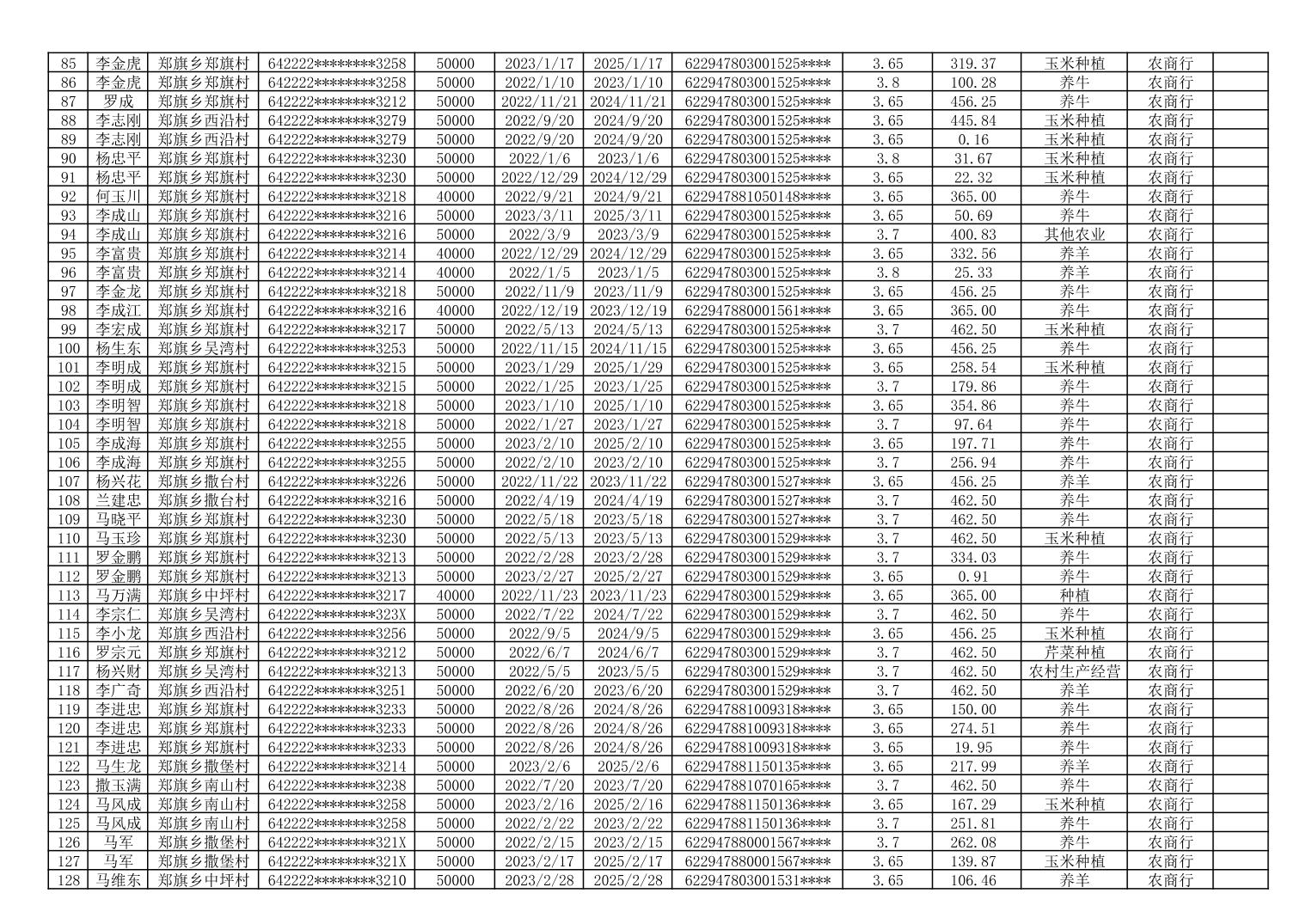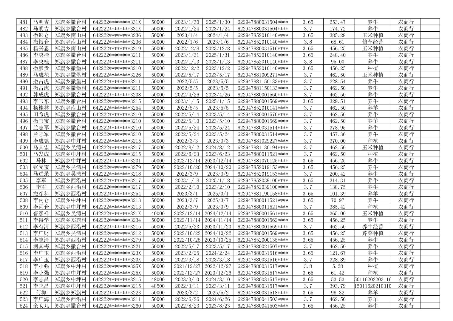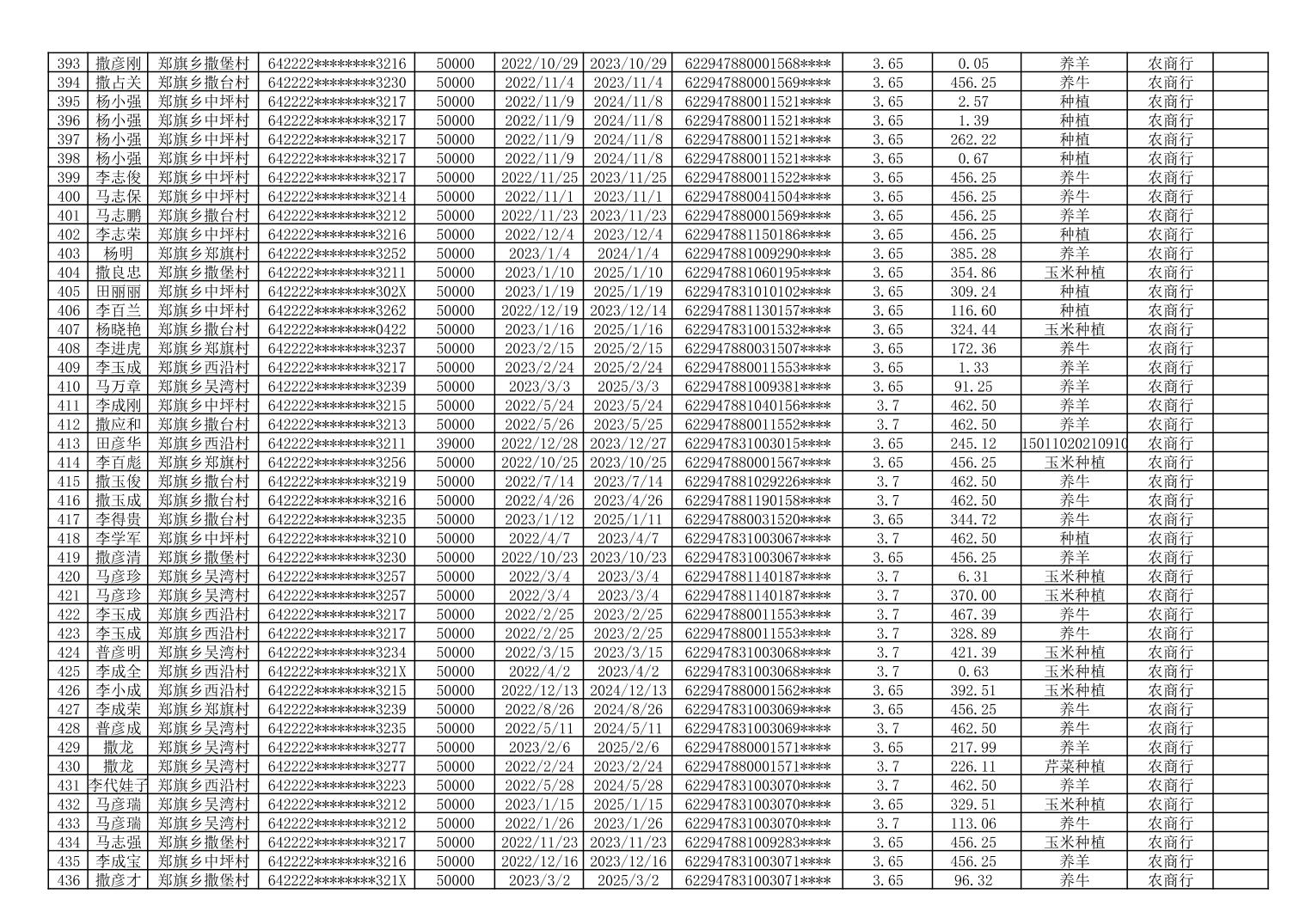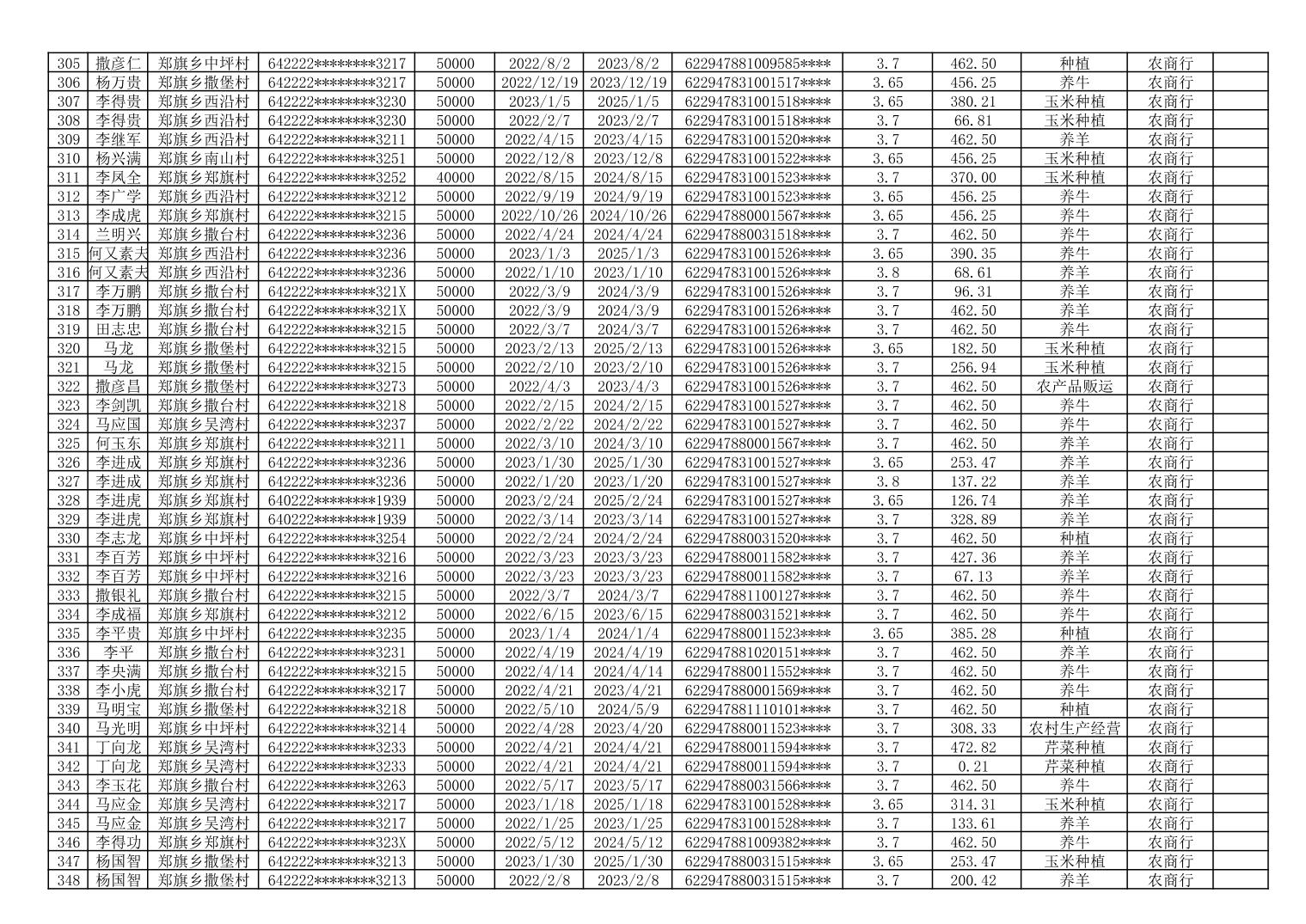 海原县郑旗乡2023年第一季度脱贫人口小额贷款贴息人员花名册