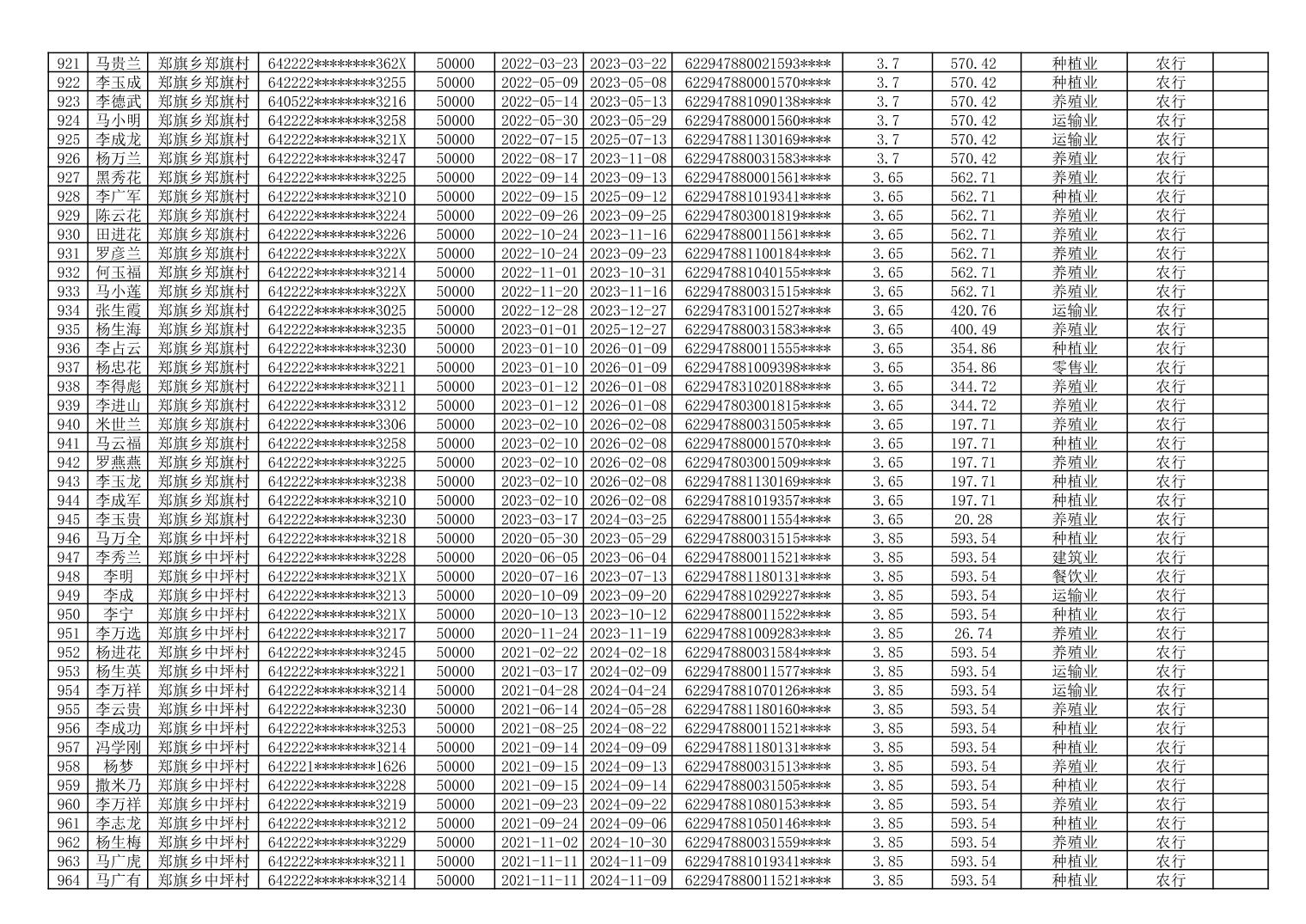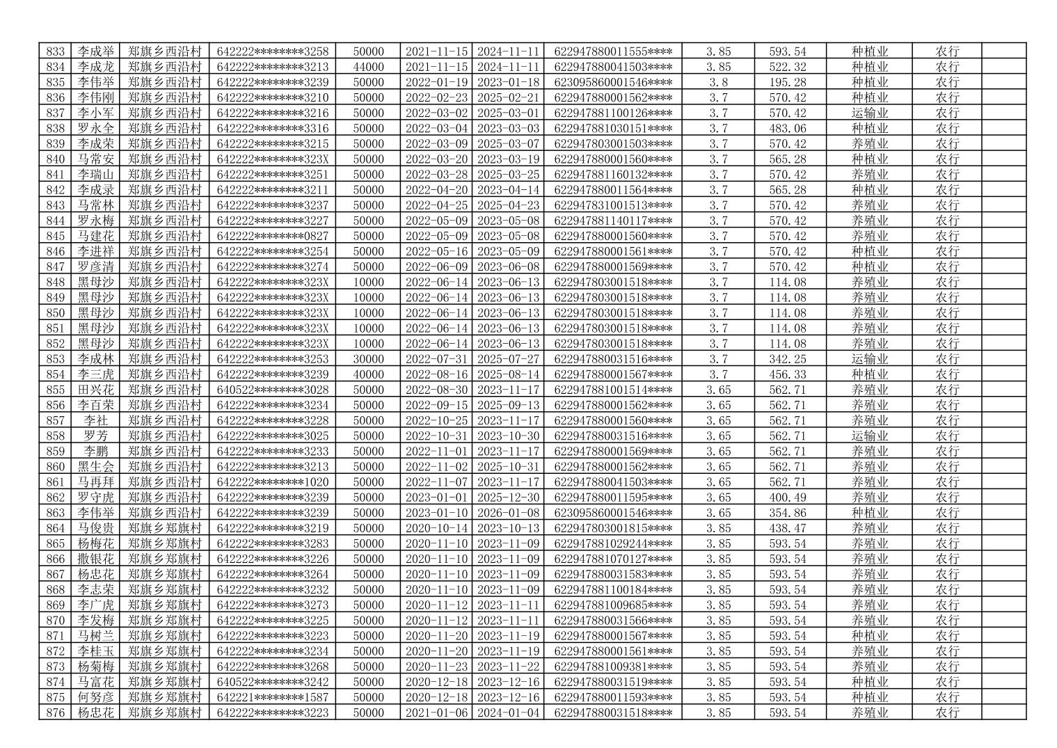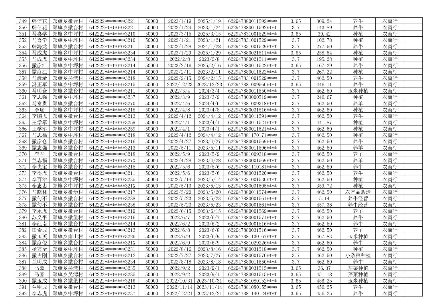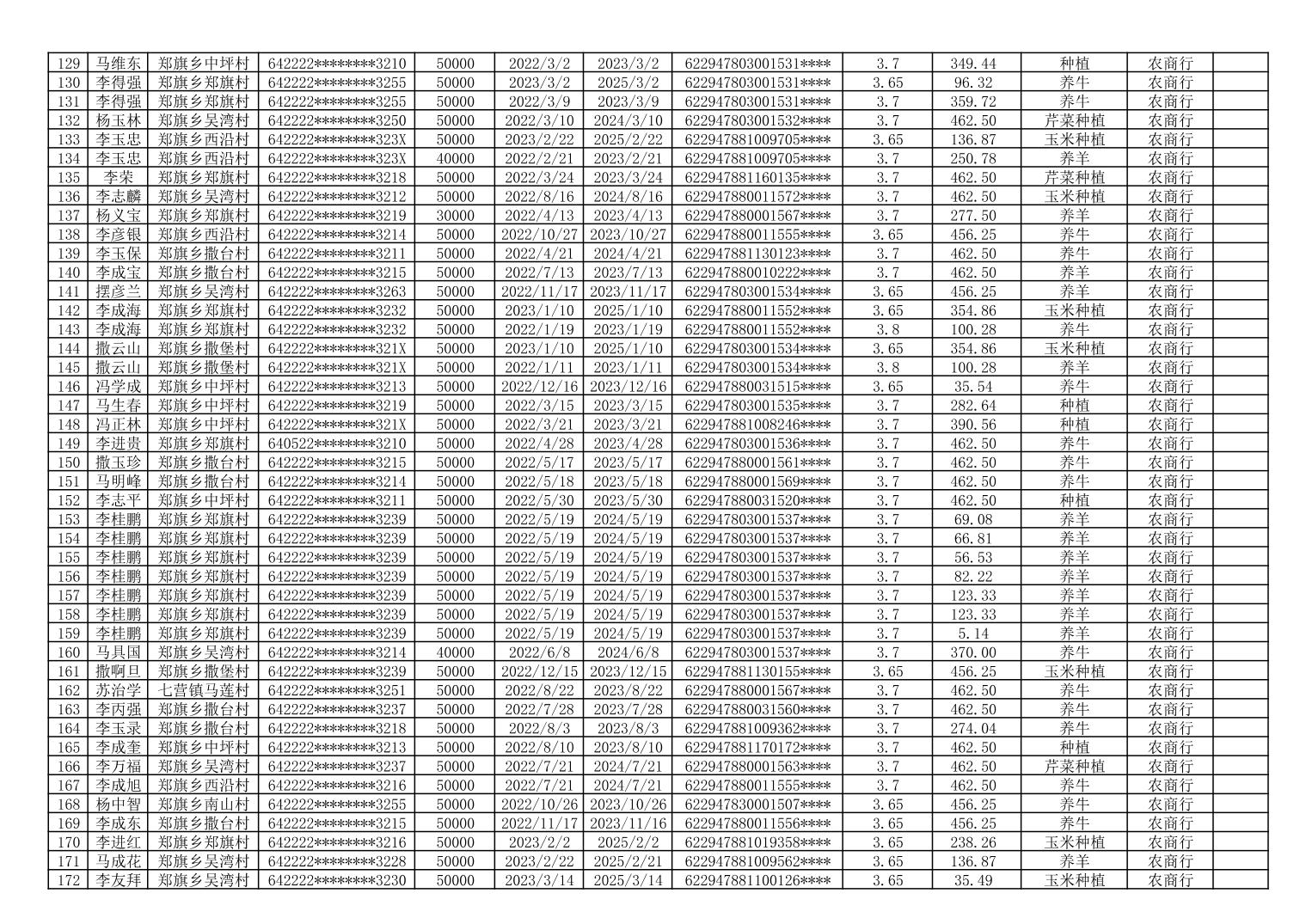 海原县郑旗乡2023年第一季度脱贫人口小额贷款贴息人员花名册
