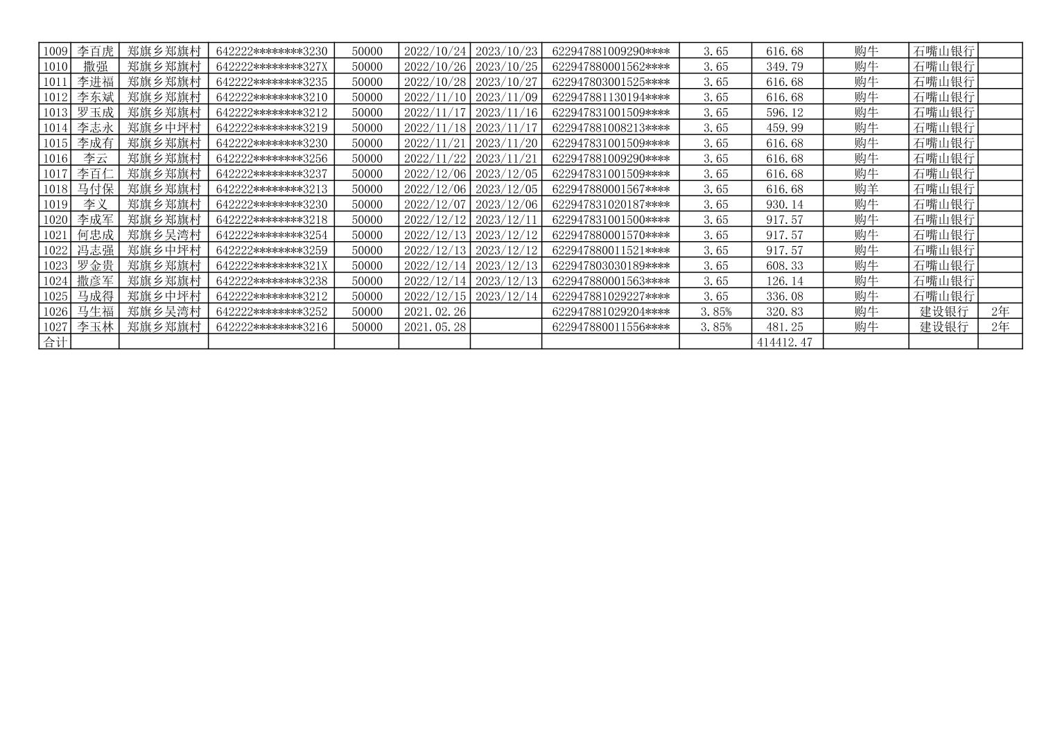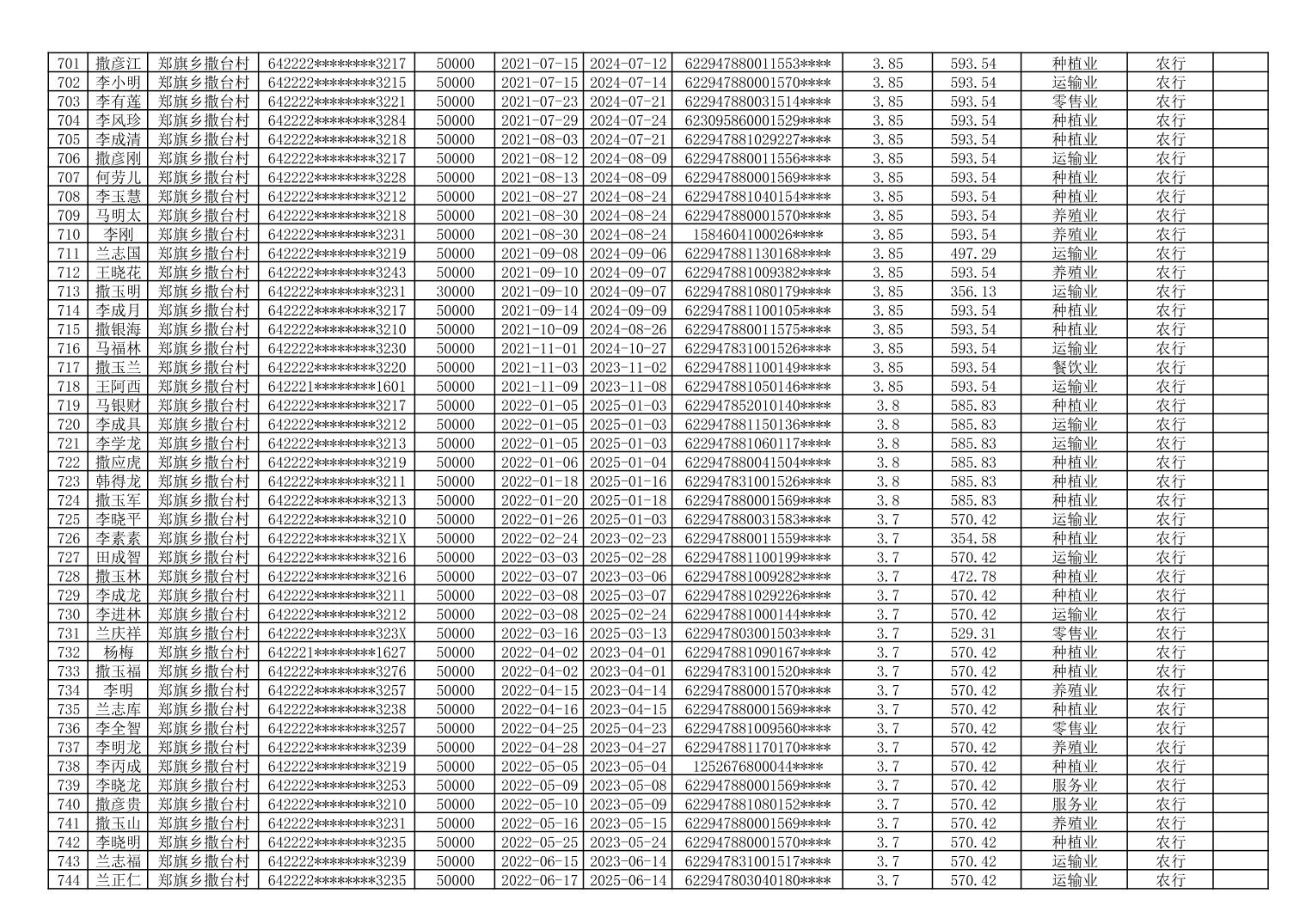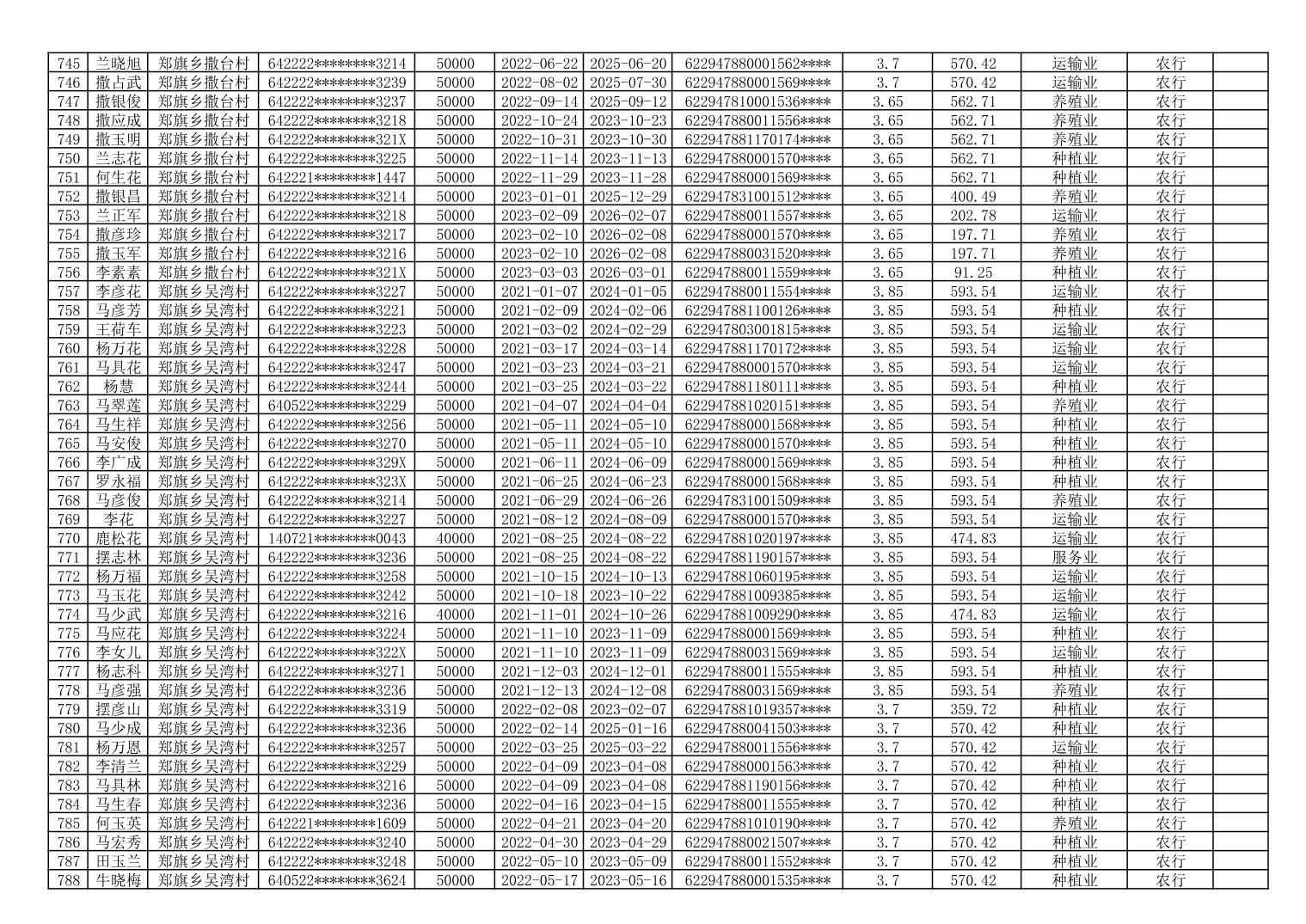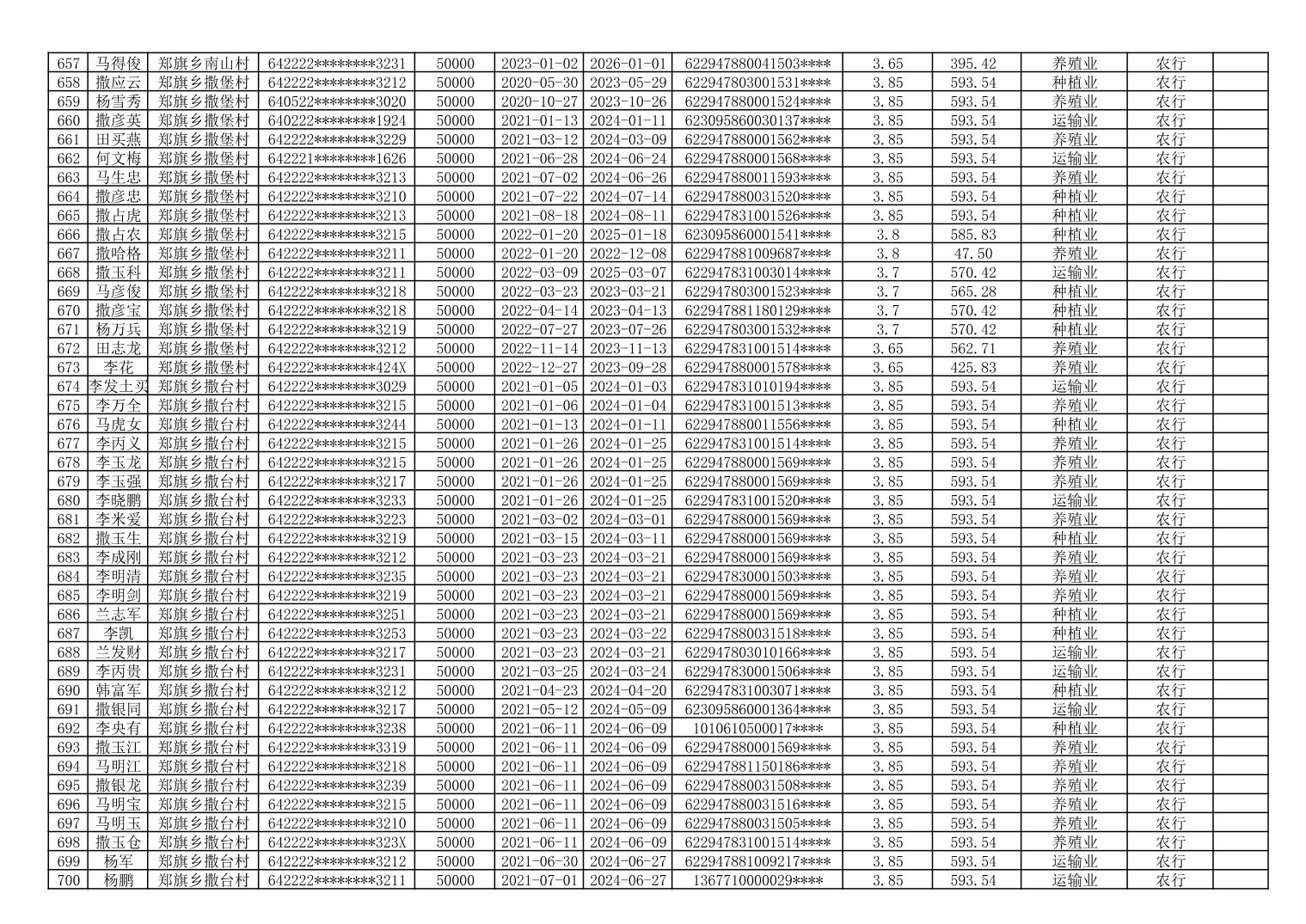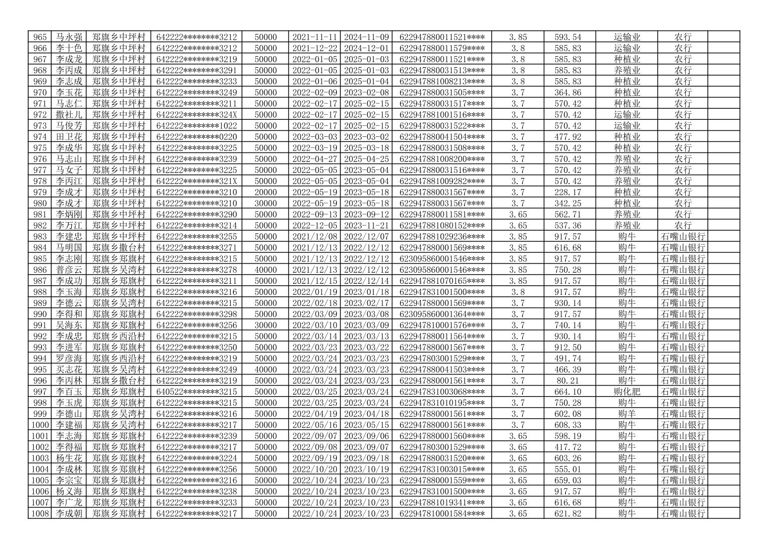 海原县郑旗乡2023年第一季度脱贫人口小额贷款贴息人员花名册