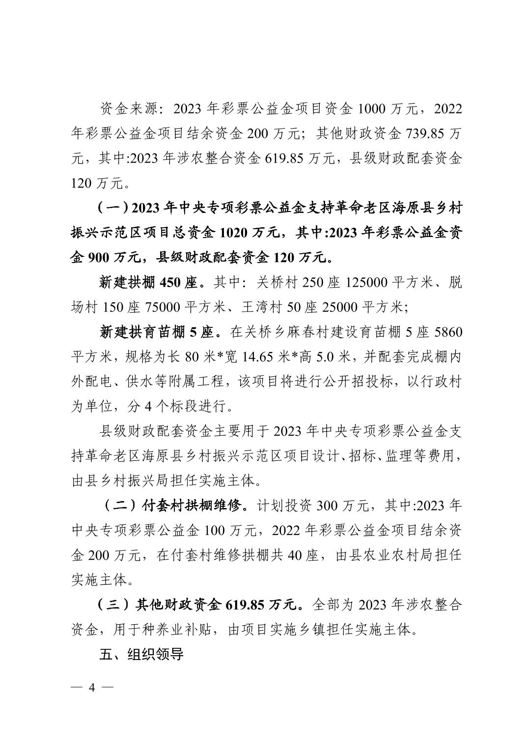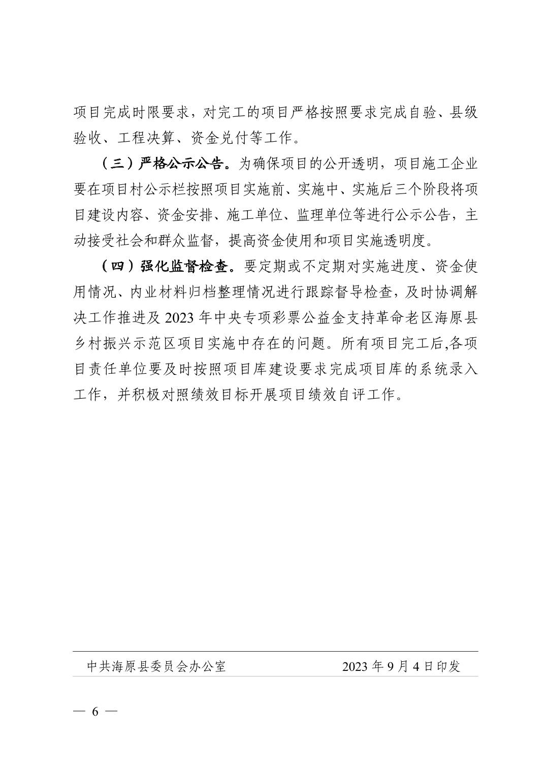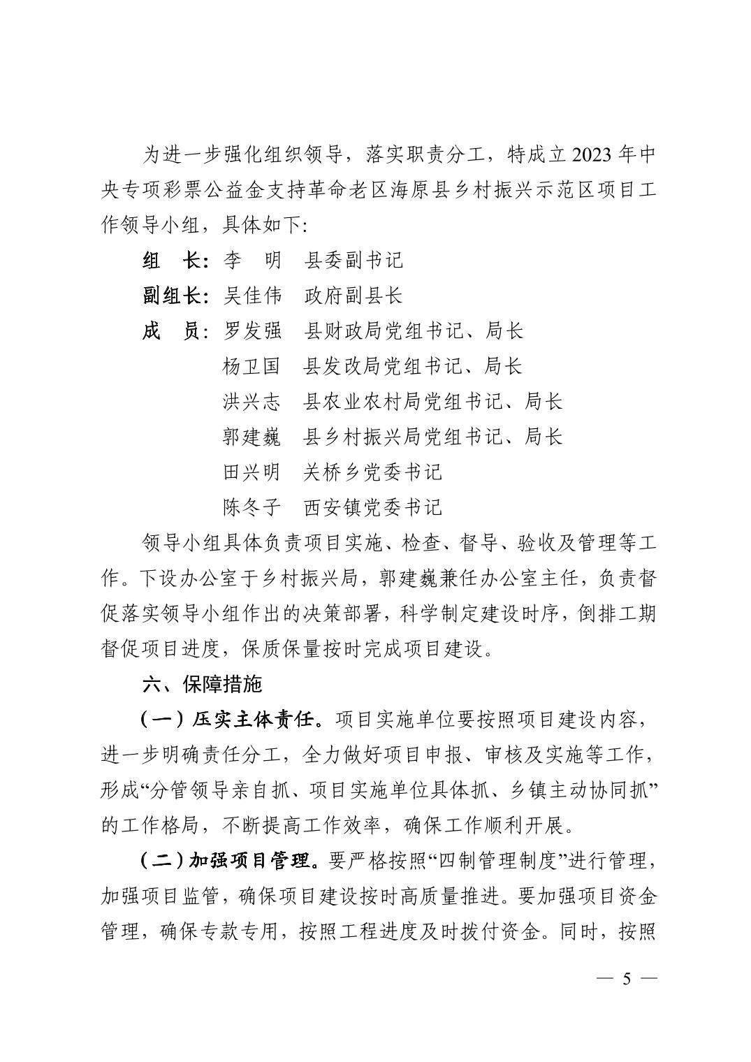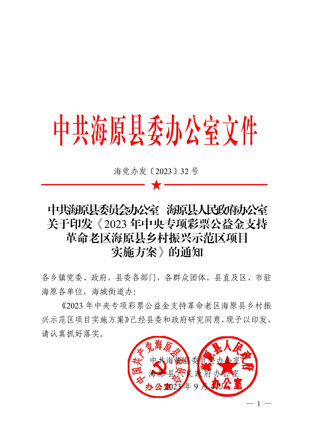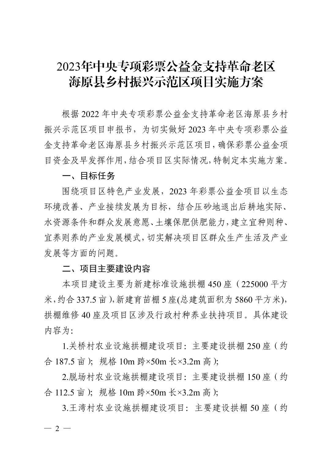 关于印发《2023年中央专项彩票公益金支持革命老区海原县乡村振兴示范区项目实施方案》的通知