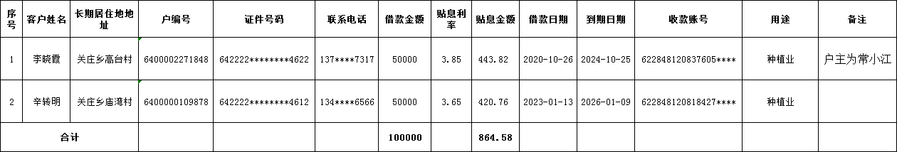 海原县关庄乡2023年第四季度脱贫人口小额贷款贴息人员花名册(农行)
