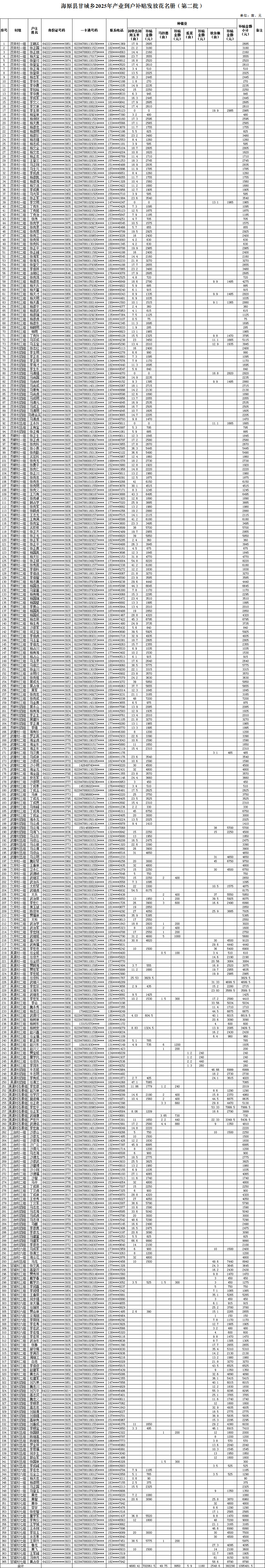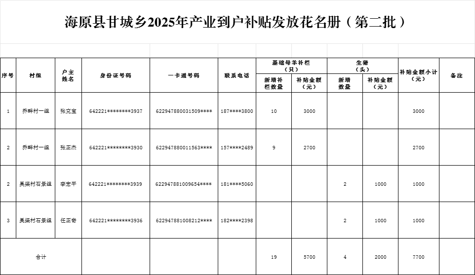 海原县甘城乡2025年产业到户补贴发放花名册(第二批)